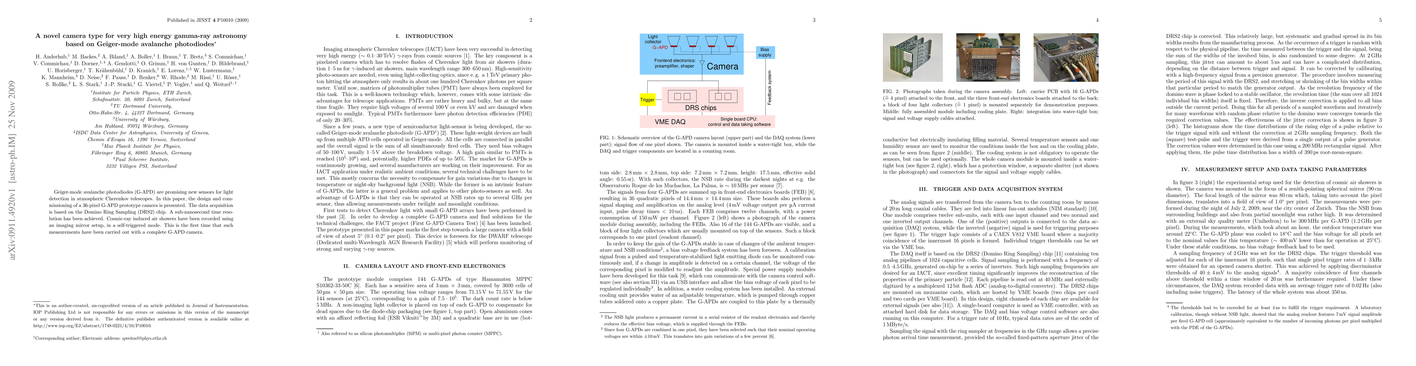 This paper presents the design and commissioning of a 36-pixel Geiger-mode avalanche photodiode (G-APD) prototype camera for high-energy gamma-ray astronomy, achieving sub-nanosecond time resolution and recording cosmic-ray induced air showers in a self-triggered mode. This marks the first complete G-APD camera used for such measurements.