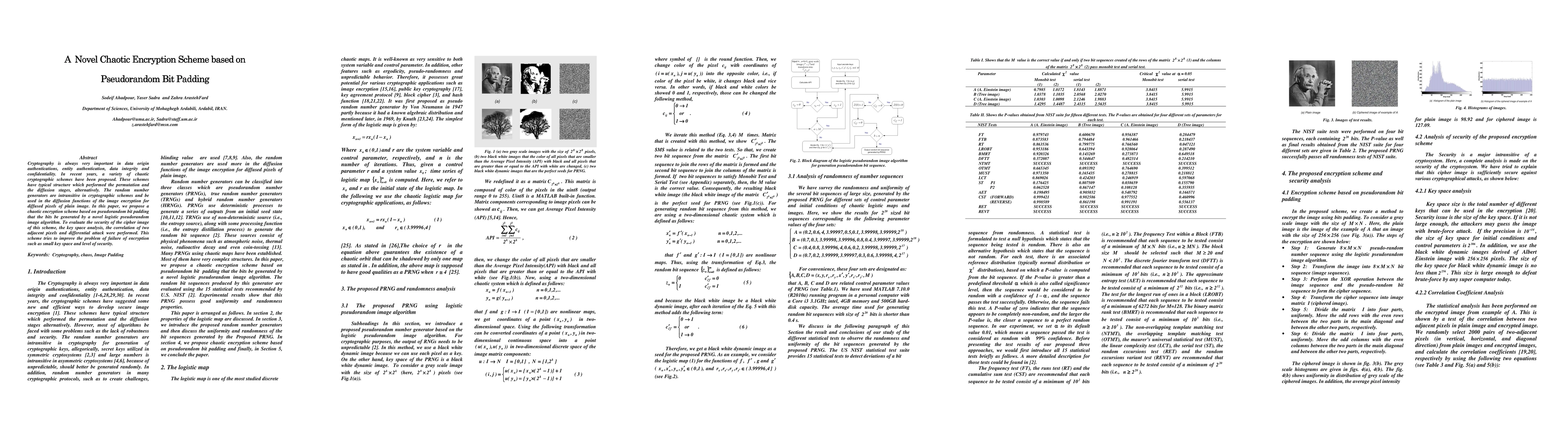 This paper proposes a novel chaotic encryption scheme using pseudorandom bit padding generated by a logistic pseudorandom image algorithm to enhance data origin authentication, entity authentication, data integrity, and confidentiality. Security evaluations include key space analysis, pixel correlation analysis, and differential attack assessments to address issues of small key space and security levels.