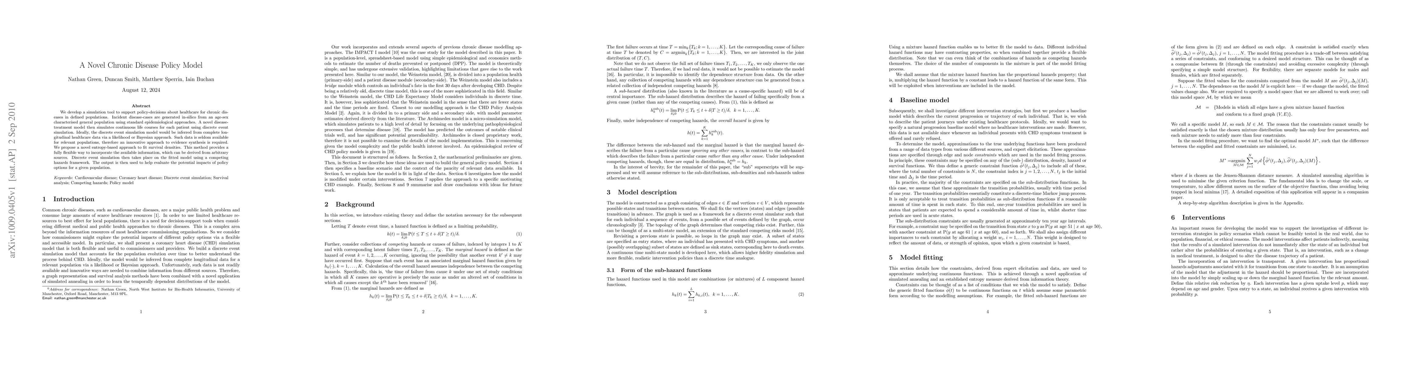 Researchers developed a simulation tool to inform healthcare policy decisions for chronic diseases, using an entropy-based approach to fit survival densities and simulate patient life courses.