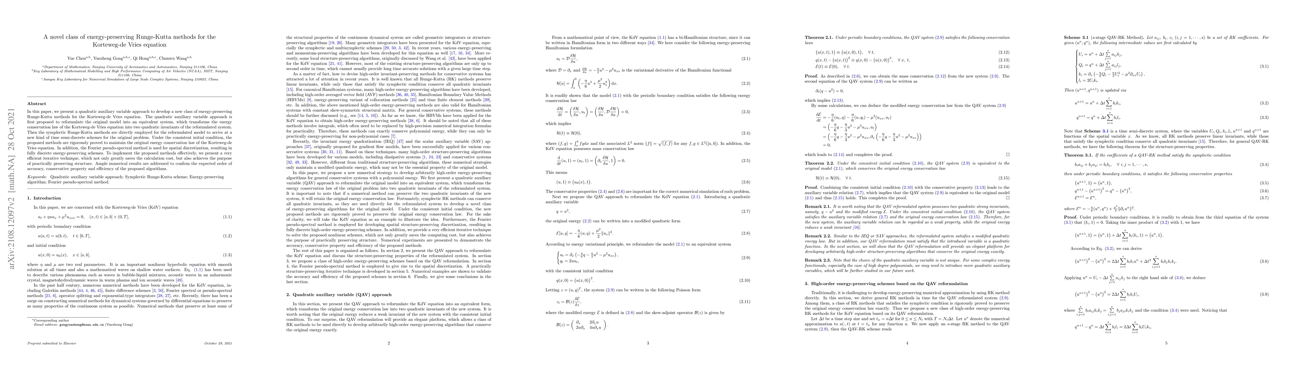 This paper introduces a novel class of energy-preserving Runge-Kutta methods for solving the Korteweg-de Vries equation using a quadratic auxiliary variable approach. The methods maintain the original energy conservation law and are shown to be efficient through numerical results.