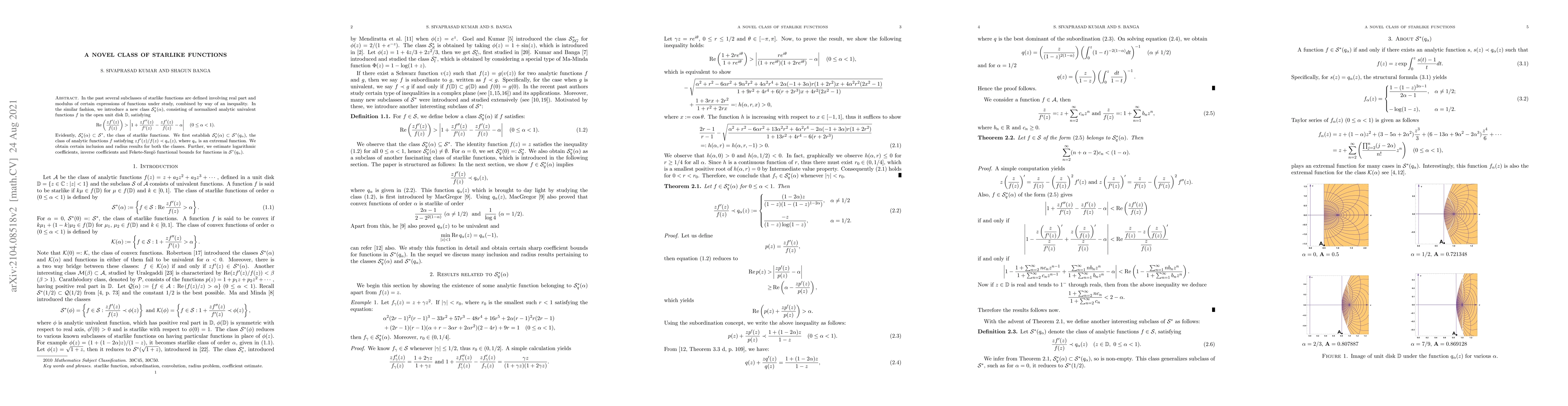 In the past several subclasses of starlike functions are defined involving real part and modulus of certain expressions of functions under study, combined by way of an inequality. In the similar fashion, we introduce a new class $\mathcal{S}^*_{q}(\alpha)$, consisting of normalized analytic univalent functions $f$ in the open unit disk $\mathbb{D}$, satisfying $$\RE\left(\dfrac{z f'(z)}{f(z)}\right) \geq \left|1+\dfrac{z f''(z)}{f'(z)} -\dfrac{z f'(z)}{f(z)}-\alpha\right| \quad (0 \leq \alpha <1).$$ Evidently, $\mathcal{S}^*_{q}(\alpha) \subset \mathcal{S}^*$, the class of starlike functions. We first establish $\mathcal{S}^*_{q}(\alpha) \subset \mathcal{S}^*(q_\alpha)$, the class of analytic functions $f$ satisfying $z f'(z)/f(z)\prec q_\alpha(z),$ where $q_\alpha$ is an extremal function. Some necessary and sufficient conditions for functions belonging to these classes are obtained in addition to the inclusion and radius problems. Further, we estimate logarithmic coefficients, inverse coefficients and Fekete-Szeg\"o functional bounds for functions in $ \mathcal{S}^*(q_\alpha)$.