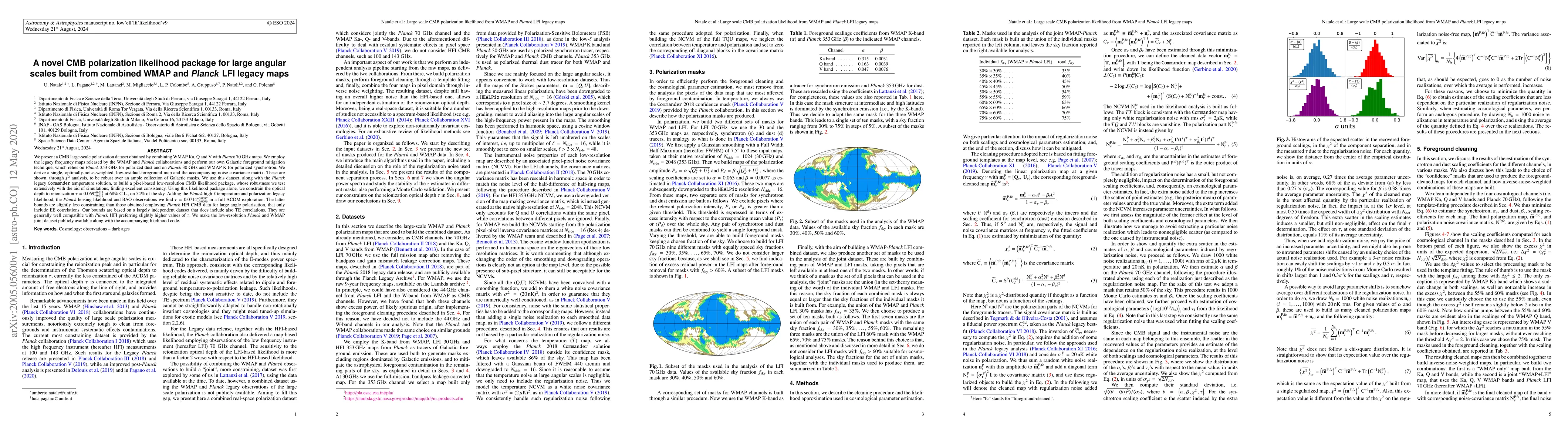 We present a CMB large-scale polarization dataset obtained by combining WMAP Ka, Q and V with Planck 70 GHz maps. We employ the legacy frequency maps released by the WMAP and Planck collaborations and perform our own Galactic foreground mitigation technique, which relies on Planck 353 GHz for polarized dust and on Planck 30 GHz and WMAP K for polarized synchrotron. We derive a single, optimally-noise-weighted, low-residual-foreground map and the accompanying noise covariance matrix. These are shown, through $\chi^2$ analysis, to be robust over an ample collection of Galactic masks. We use this dataset, along with the Planck legacy Commander temperature solution, to build a pixel-based low-resolution CMB likelihood package, whose robustness we test extensively with the aid of simulations, finding excellent consistency. Using this likelihood package alone, we constrain the optical depth to reionazation $\tau=0.069^{+0.011}_{-0.012}$ at $68\%$ C.L., on 54\% of the sky. Adding the Planck high-$\ell$ temperature and polarization legacy likelihood, the Planck lensing likelihood and BAO observations we find $\tau=0.0714_{-0.0096}^{+0.0087}$ in a full $\Lambda$CDM exploration. The latter bounds are slightly less constraining than those obtained employing \Planck\ HFI CMB data for large angle polarization, that only include EE correlations. Our bounds are based on a largely independent dataset that does include also TE correlations. They are generally well compatible with Planck HFI preferring slightly higher values of $\tau$. We make the low-resolution Planck and WMAP joint dataset publicly available along with the accompanying likelihood code.