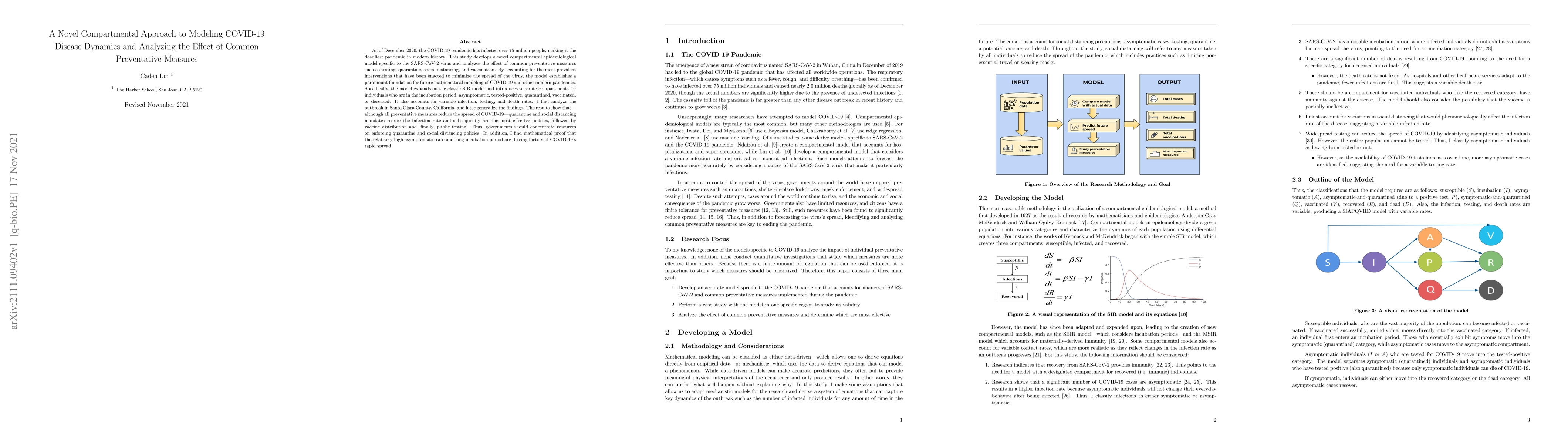 As of December 2020, the COVID-19 pandemic has infected over 75 million people, making it the deadliest pandemic in modern history. This study develops a novel compartmental epidemiological model specific to the SARS-CoV-2 virus and analyzes the effect of common preventative measures such as testing, quarantine, social distancing, and vaccination. By accounting for the most prevalent interventions that have been enacted to minimize the spread of the virus, the model establishes a paramount foundation for future mathematical modeling of COVID-19 and other modern pandemics. Specifically, the model expands on the classic SIR model and introduces separate compartments for individuals who are in the incubation period, asymptomatic, tested-positive, quarantined, vaccinated, or deceased. It also accounts for variable infection, testing, and death rates. I first analyze the outbreak in Santa Clara County, California, and later generalize the findings. The results show that, although all preventative measures reduce the spread of COVID-19, quarantine and social distancing mandates reduce the infection rate and subsequently are the most effective policies, followed by vaccine distribution and, finally, public testing. Thus, governments should concentrate resources on enforcing quarantine and social distancing policies. In addition, I find mathematical proof that the relatively high asymptomatic rate and long incubation period are driving factors of COVID-19's rapid spread.