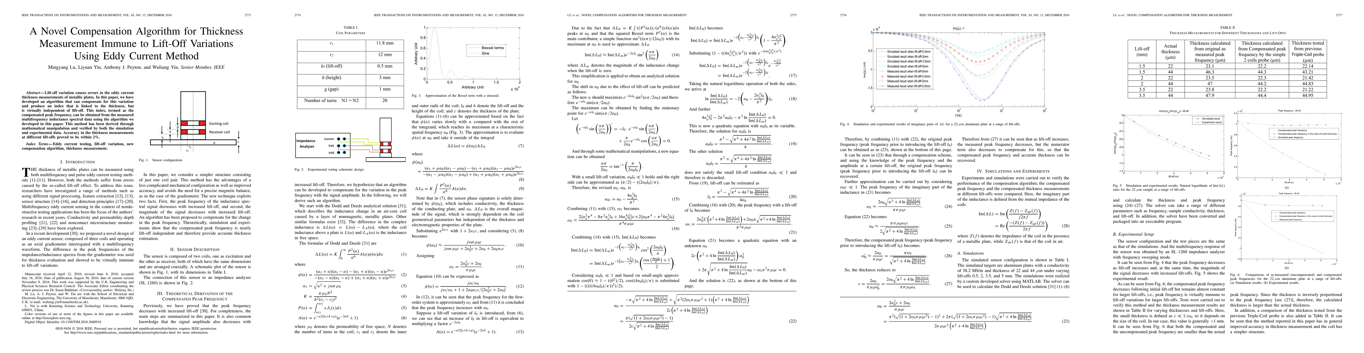Lift-off variation causes errors in the eddy current thickness measurements of metallic plates. In this paper, we have developed an algorithm that can compensate for this variation and produce an index that is linked to the thickness, but is virtually independent of lift-off. This index, termed as the compensated peak frequency, can be obtained from the measured multifrequency inductance spectral data using the algorithm we developed in this paper. This method has been derived through mathematical manipulation and verified by both the simulation and experimental data. Accuracy in the thickness measurements at different lift-offs proved to be within 2%.