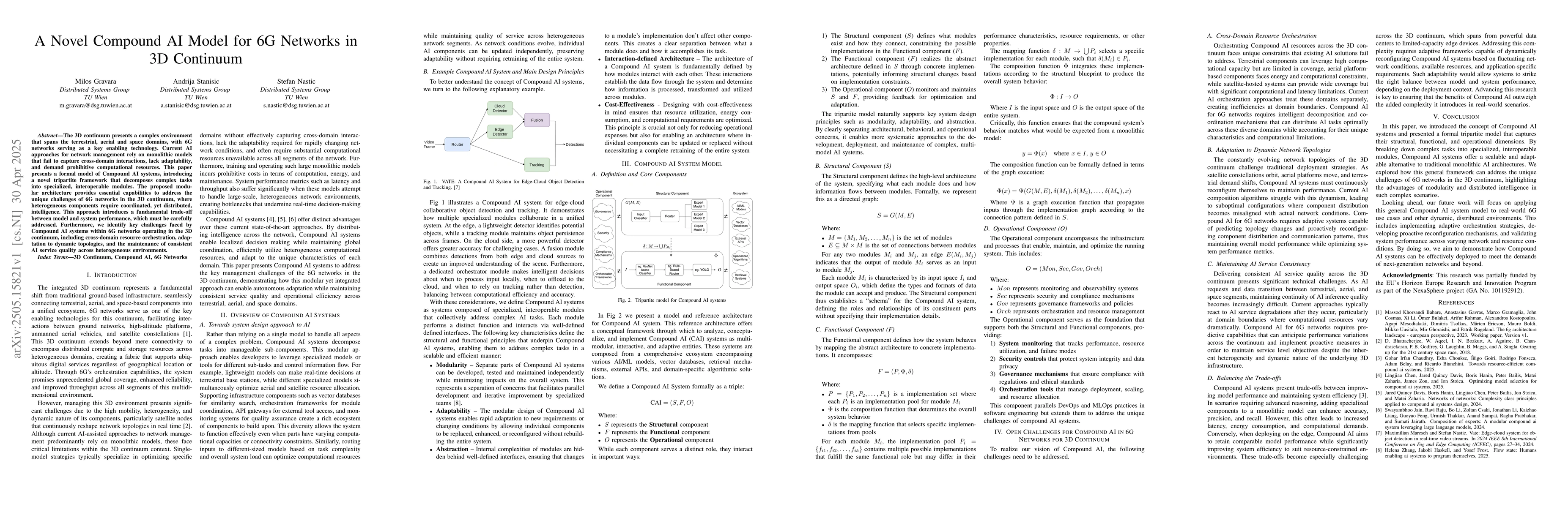 The paper presents a formal model of Compound AI systems, introducing a novel tripartite framework that decomposes complex tasks into specialized, interoperable modules for 6G networks in the 3D continuum.