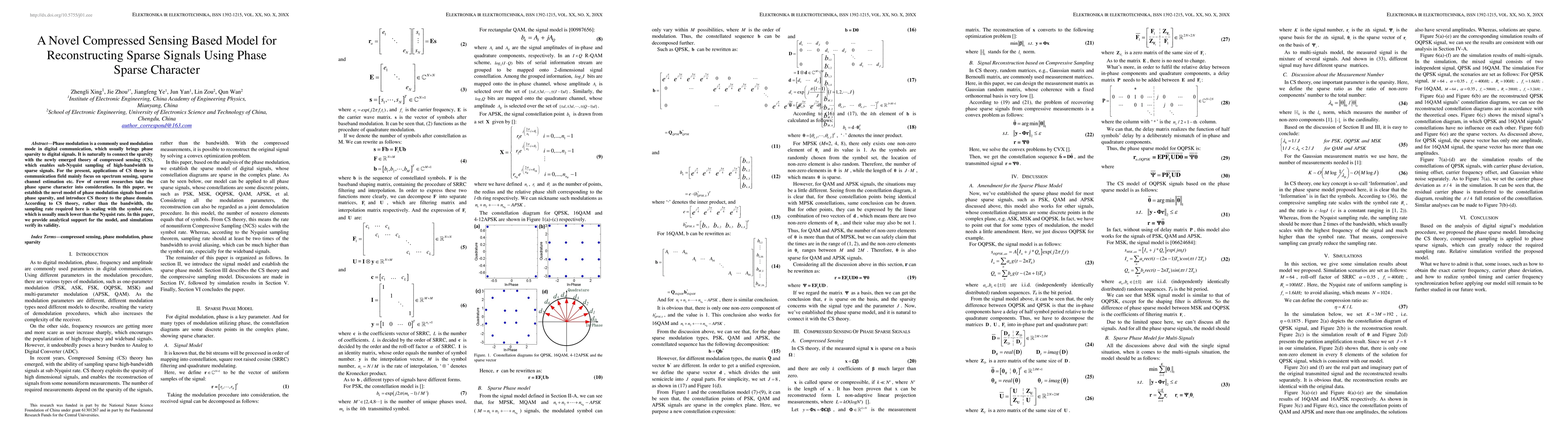 Researchers develop a new model for reconstructing sparse signals using phase sparsity, enabling sub-Nyquist sampling rates, and verify its validity through simulations.