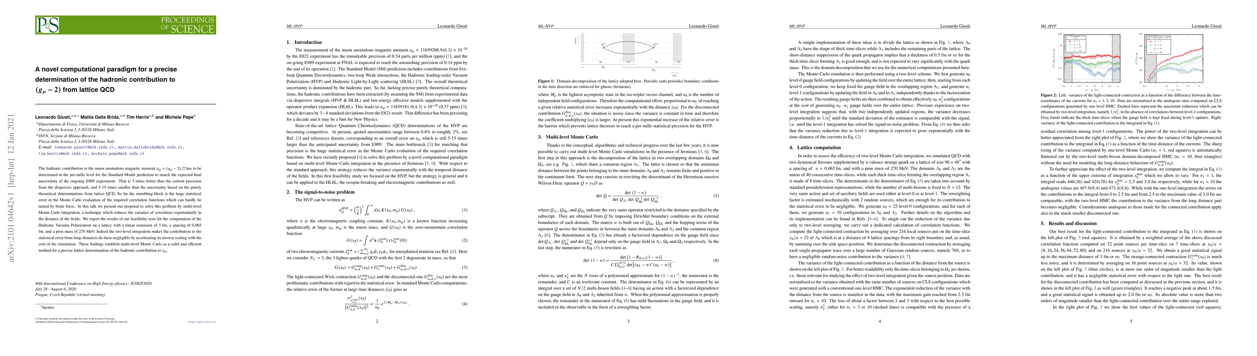 The hadronic contribution to the muon anomalous magnetic moment $a_\mu=(g_\mu-2)/2$ has to be determined at the per-mille level for the Standard Model prediction to match the expected final uncertainty of the ongoing E989 experiment. That is 3 times better than the current precision from the dispersive approach, and 5-15 times smaller than the uncertainty based on the purely theoretical determinations from lattice QCD. So far the stumbling-block is the large statistical error in the Monte Carlo evaluation of the required correlation functions which can hardly be tamed by brute force. In this talk we present our proposal to solve this problem by multi-level Monte Carlo integration, a technique which reduces the variance of correlators exponentially in the distance of the fields. We report the results of our feasibility tests for the computation of the Hadronic Vacuum Polarization on a lattice with a linear extension of 3~fm, a spacing of 0.065 fm, and a pion mass of 270 MeV. Indeed the two-level integration makes the contribution to the statistical error from long-distances de-facto negligible by accelerating its inverse scaling with the cost of the simulation. These findings establish multi-level Monte Carlo as a solid and efficient method for a precise lattice determination of the hadronic contribution to $a_\mu$.