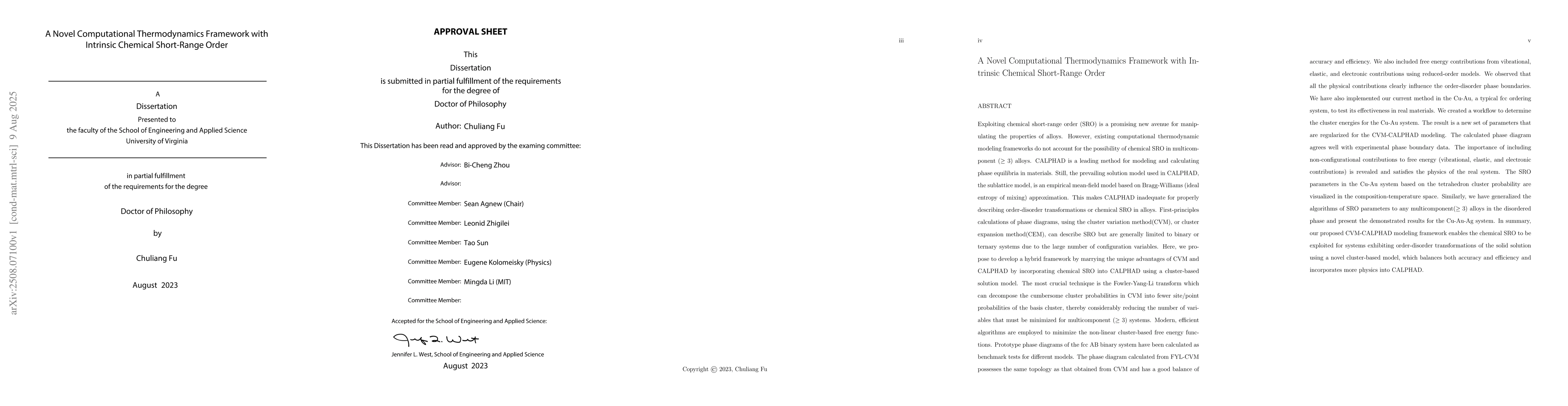 Chemical short-range order (SRO) provides new opportunities for tuning alloy properties, but conventional computational thermodynamics frameworks such as CALPHAD, based on Bragg-Williams mean-field approximations, cannot properly describe SRO or order-disorder transformations in multicomponent ($\geq$3) alloys. First-principles approaches combined with the cluster variation method (CVM) or cluster expansion method (CEM) can capture SRO but suffer from high computational cost. Here we present a hybrid CVM-CALPHAD framework with a thermodynamic solid solution model named as FYL-CVM, enabled by the Fowler-Yang-Li (FYL) transform to reduce the number of variables required in free-energy minimization. This achieves efficient modeling of SRO in multicomponent systems within the CALPHAD formalism. Benchmark tests on fcc AB binaries show that FYL-CVM reproduces CVM phase diagrams with much higher efficiency, while non-configurational contributions from vibrational, elastic, and electronic terms are also incorporated to capture their physical effects on order-disorder boundaries. Applied to the Cu-Au system, this method produces phase diagrams with experimental data in an efficient parameterization and elucidates the temperature-composition dependence of SRO parameters via the SRO diagram. Its applicability to ternary alloys is also demonstrated for the Cu-Au-Ag system. Overall, this framework strikes a balance between accuracy and efficiency, extends CALPHAD to account for chemical SRO, and enables a comprehensive physics-informed modeling of ordering phenomena. (This dissertation was submitted to the University of Virginia in 2023 as the author's doctoral research. For the original complete abstract, please refer to the PDF version.)