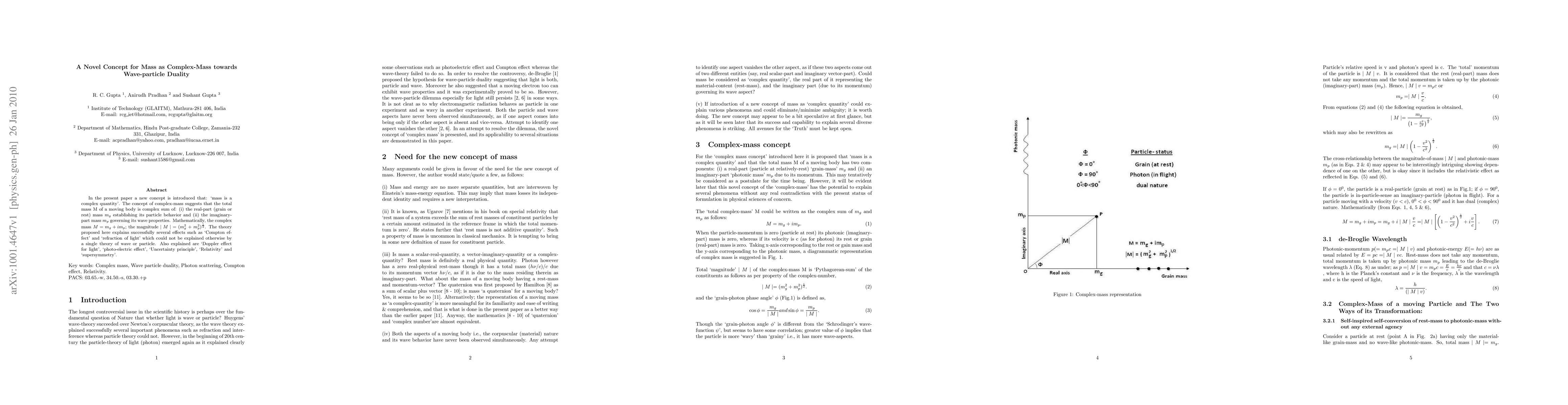 A new concept proposes that mass is a complex quantity consisting of both particle-like (rest) mass and wave-like properties, successfully explaining several phenomena such as Compton effect and uncertainty principle.