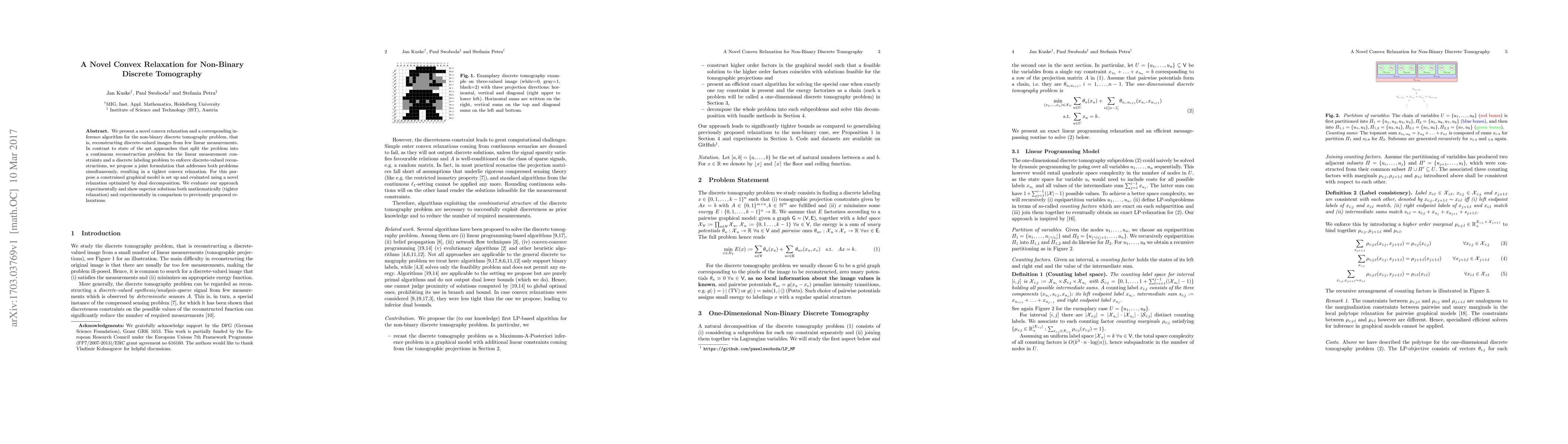 This paper introduces a novel convex relaxation and inference algorithm for non-binary discrete tomography, proposing a joint formulation that simultaneously addresses reconstruction and discrete-valued constraints, resulting in a tighter relaxation compared to existing methods. Experimental results demonstrate superior performance both mathematically and practically.