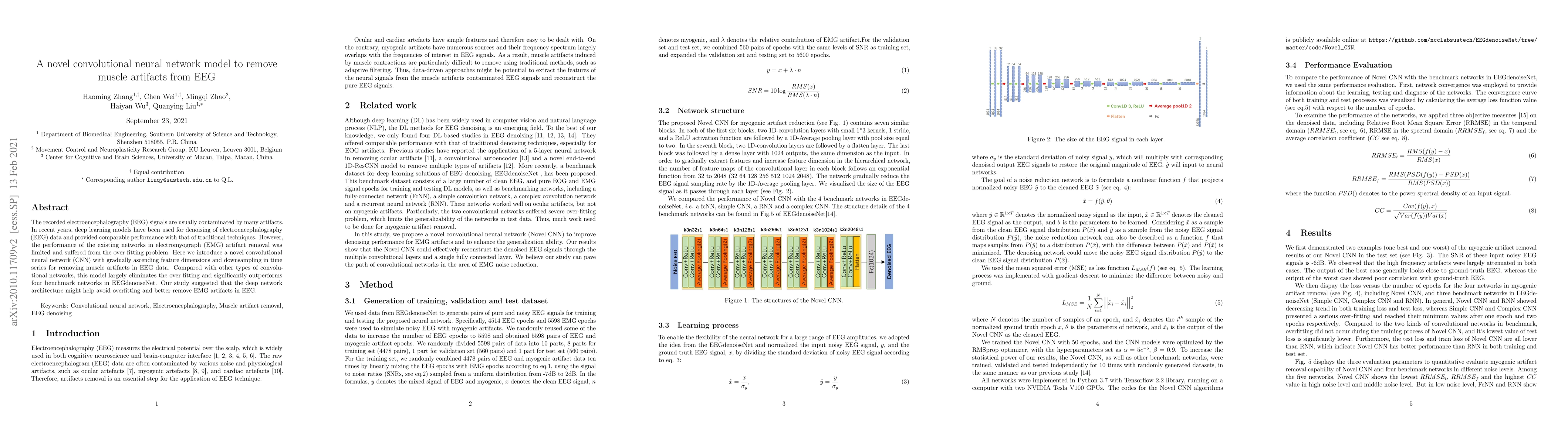 This paper introduces a novel convolutional neural network (CNN) designed to effectively remove muscle artifacts from EEG signals, addressing limitations of existing networks and overfitting issues. The proposed model outperforms benchmark networks in artifact removal, suggesting deep network architectures can enhance EMG artifact elimination.