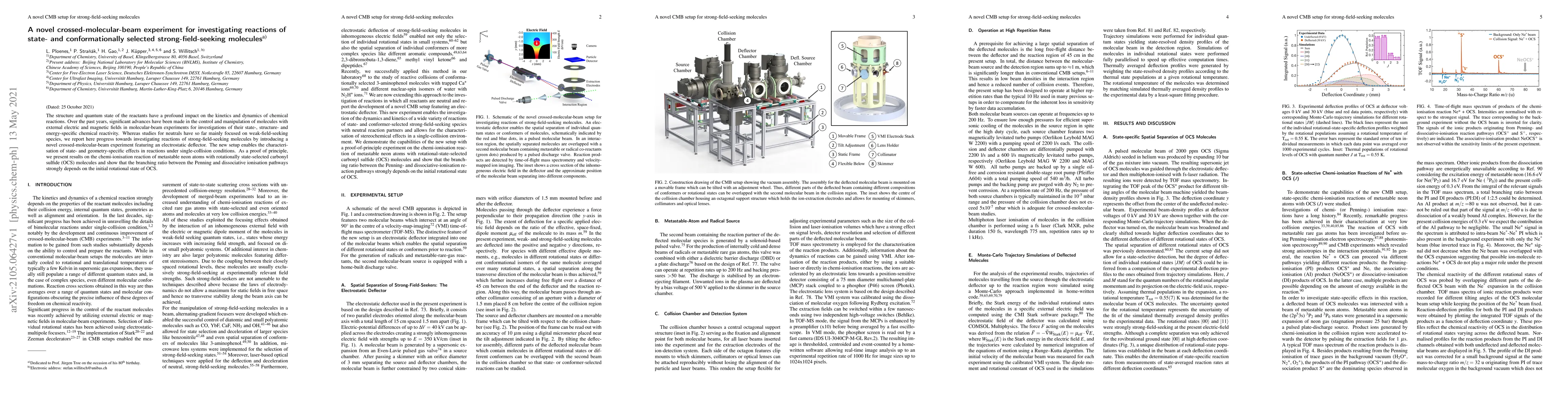 This paper introduces a novel crossed-molecular-beam experiment with an electrostatic deflector for studying reactions of strong-field-seeking molecules, focusing on the state- and geometry-specific effects. As a proof of principle, it demonstrates the dependence of the branching ratio in the chemi-ionisation reaction between metastable neon atoms and carbonyl sulfide on the initial rotational state of OCS.