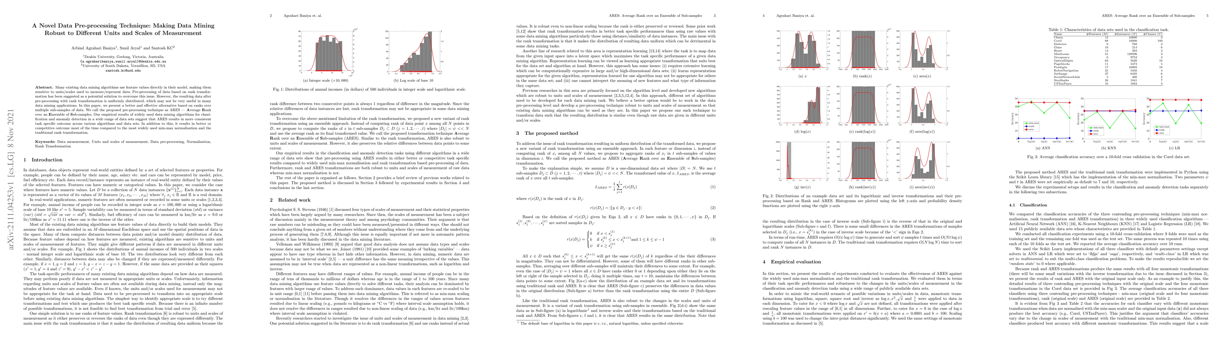 This paper introduces ARES, a novel data pre-processing technique that averages ranks over multiple sub-samples to make data mining robust to different units and scales. Empirical results show ARES provides more consistent outcomes across various algorithms and datasets compared to traditional methods.