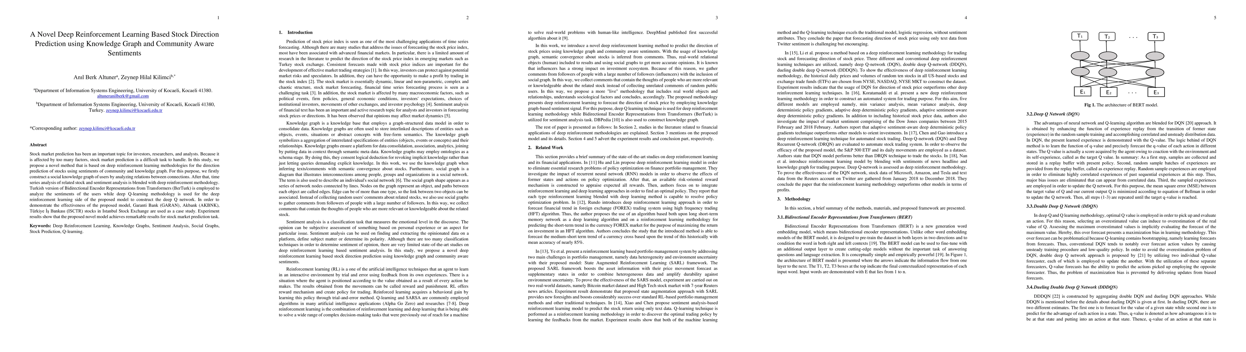 This study proposes a novel method using deep reinforcement learning to predict stock directions based on community sentiments and knowledge graphs, achieving remarkable results in a case study of Turkish stocks.