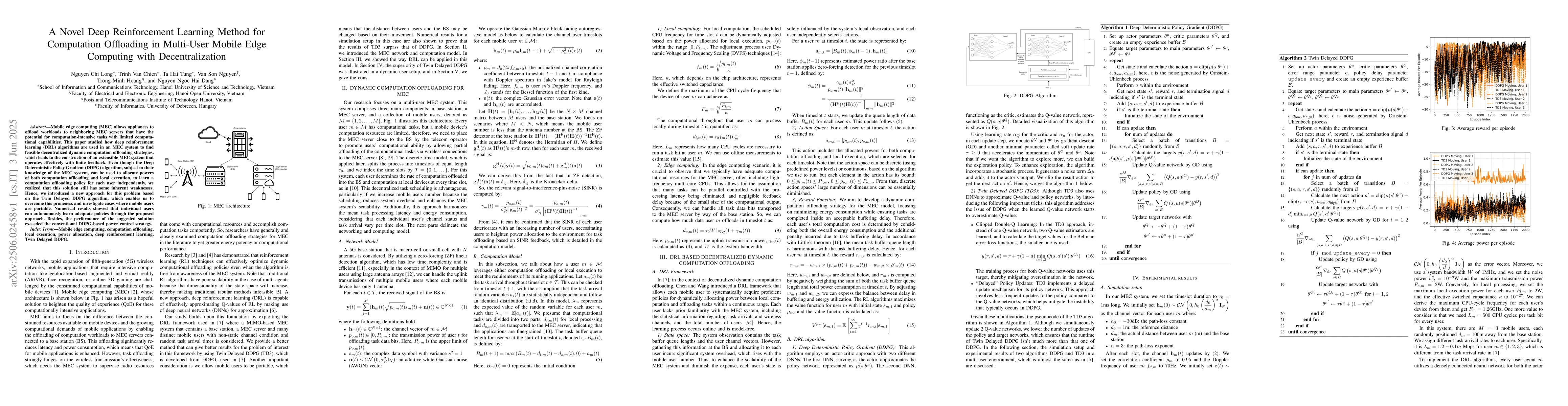 The main technical contribution is the introduction of a Twin Delayed DDPG-based approach for computation offloading in decentralized MEC systems, addressing weaknesses of prior DDPG implementations.