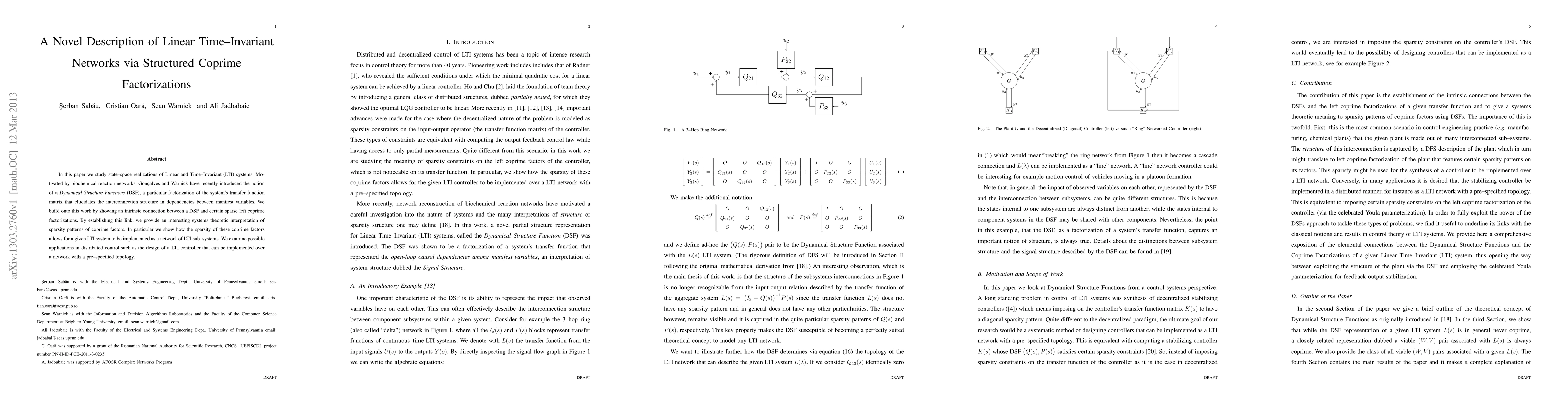 Researchers link sparse left coprime factorizations to networked linear time-invariant systems, enabling the design of distributed controllers for networked control systems.