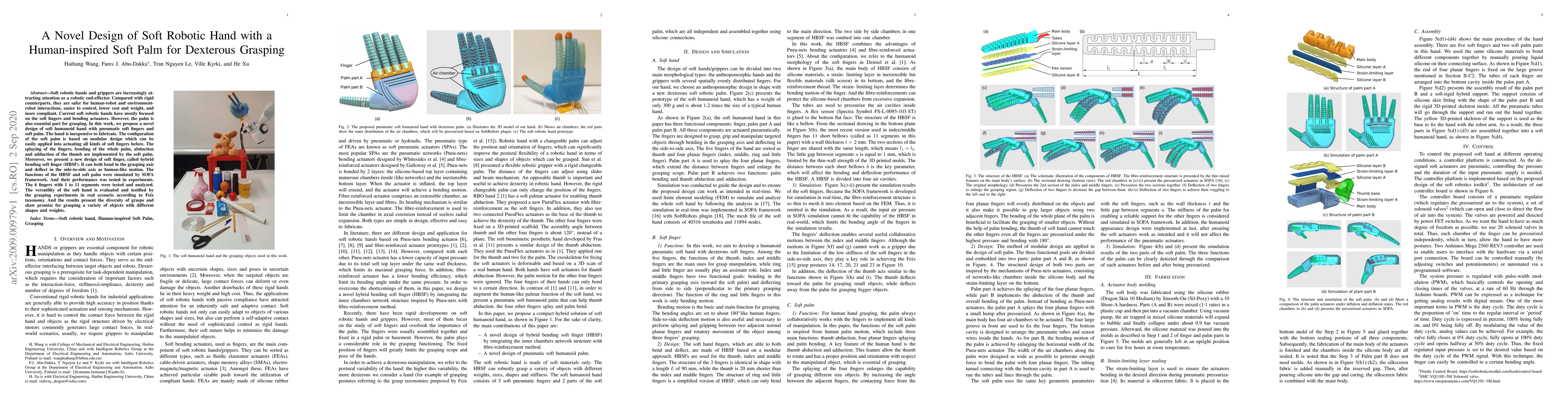 This paper introduces a novel soft robotic hand design featuring a human-inspired soft palm and hybrid bending soft fingers (HBSF). It demonstrates the hand's versatility in grasping various objects through simulations and experiments, showcasing its potential for safe and efficient human-robot interactions.