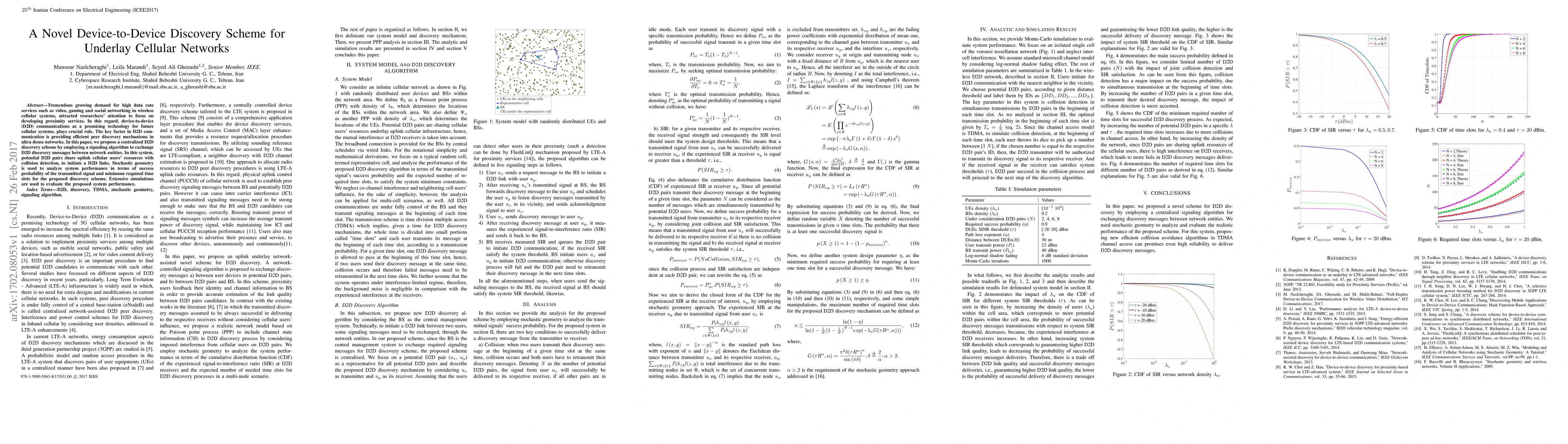 This paper proposes a centralized device-to-device (D2D) discovery scheme for underlay cellular networks, utilizing a signaling algorithm to facilitate D2D peer discovery. The scheme employs stochastic geometry to analyze performance metrics, including success probability and time efficiency, validated through extensive simulations.