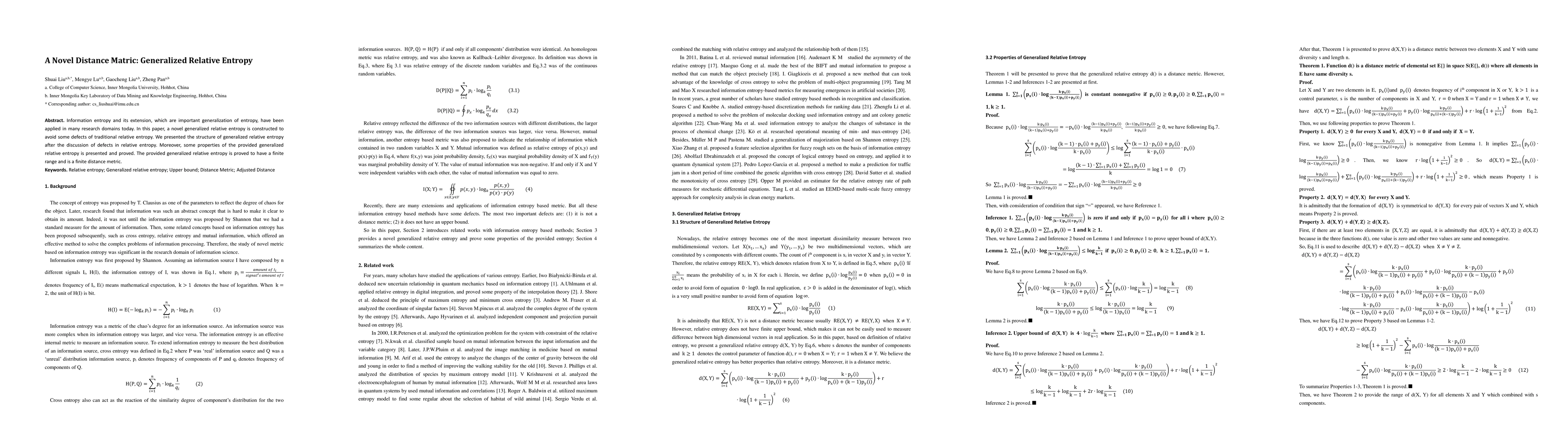 Researchers developed a new distance metric called generalized relative entropy, which overcomes defects of traditional relative entropy, proving it to be a finite range and distance metric.