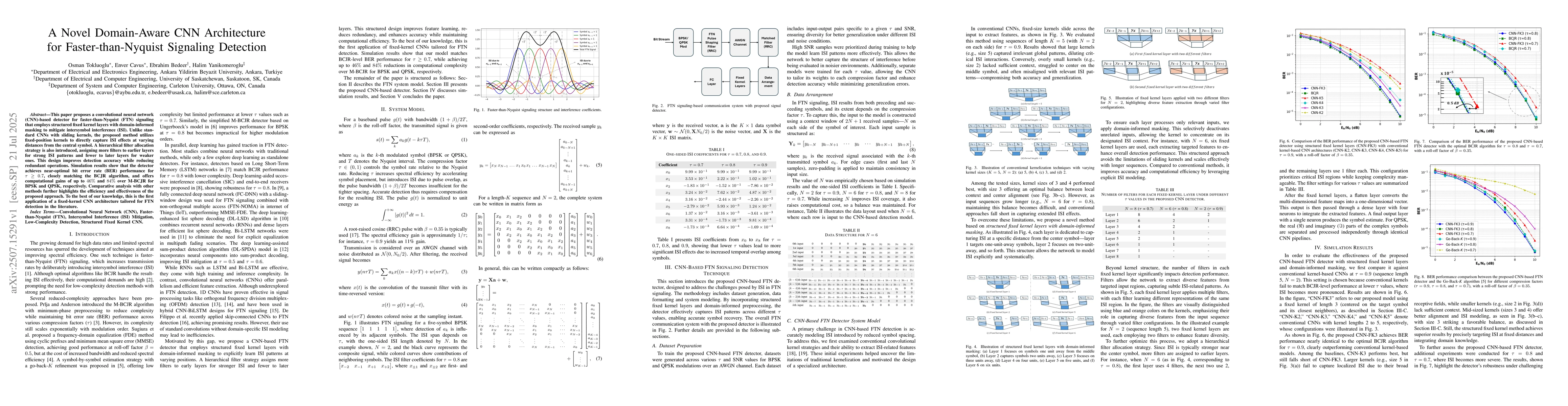 This research contributes to the development of a computationally efficient and accurate detector for FTN signaling, which is crucial for high-speed data transmission systems, and it is the first application of a fixed-kernel CNN architecture tailored for FTN detection in the literature.