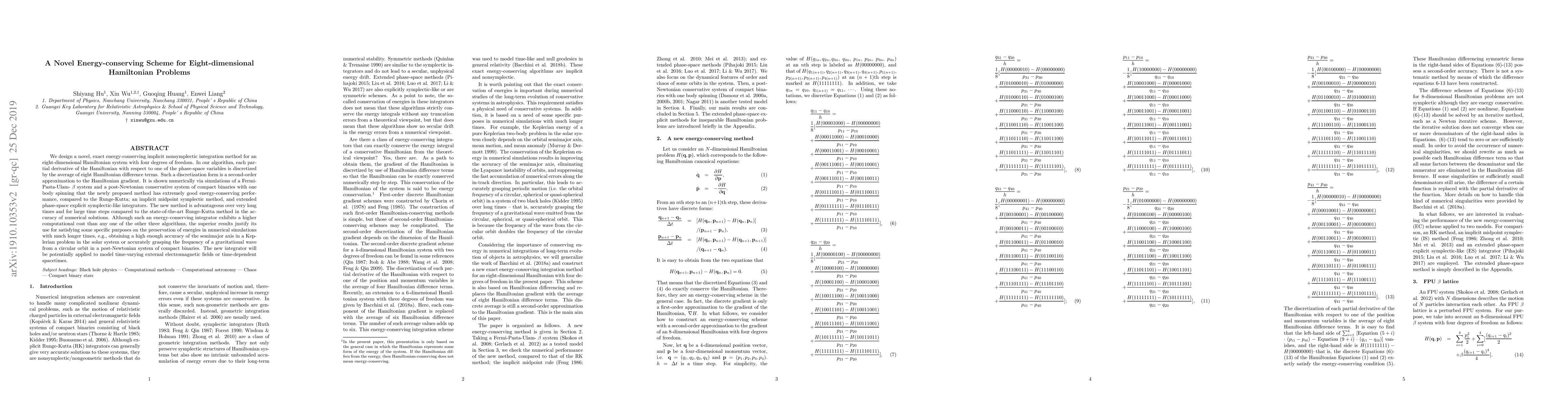 We design a novel, exactly energy-conserving implicit non-symplectic integration method for an eight-dimensional Hamiltonian system with four degrees of freedom. In our algorithm, each partial derivative of the Hamiltonian with respect to one of phase-space variables is discretized by the average of eight Hamiltonian difference terms. Such a discretization form is a second-order approximation to the Hamiltonian gradient. It is shown numerically via simulations of an FPU-$\beta$ system and a post-Newtonian conservative system of compact binaries with one body spinning that the newly proposed method has extremely good energy-conserving performance, compared to the Runge-Kutta, implicit midpoint symplectic method and extended phase-space explicit symplectic-like integrators. The new method is advantageous over very long times and for large time steps compared to state-of-the-art Runge-Kutta method in the accuracy of numerical solutions. Although such an energy-conserving integrator exhibits a higher computational cost than any one of the other three algorithms, the superior results justify its use for satisfying some specific purposes on the preservation of energies in numerical simulations with much longer times, e.g. obtaining a high enough accuracy of the semimajor axis in a Keplerian problem in the Solar System or accurately grasping the frequency of a gravitational wave from a circular orbit in a post-Newtonian system of compact binaries. The new integrator will be potentially applied to model time-varying external electromagnetic fields or time-dependent spacetimes.