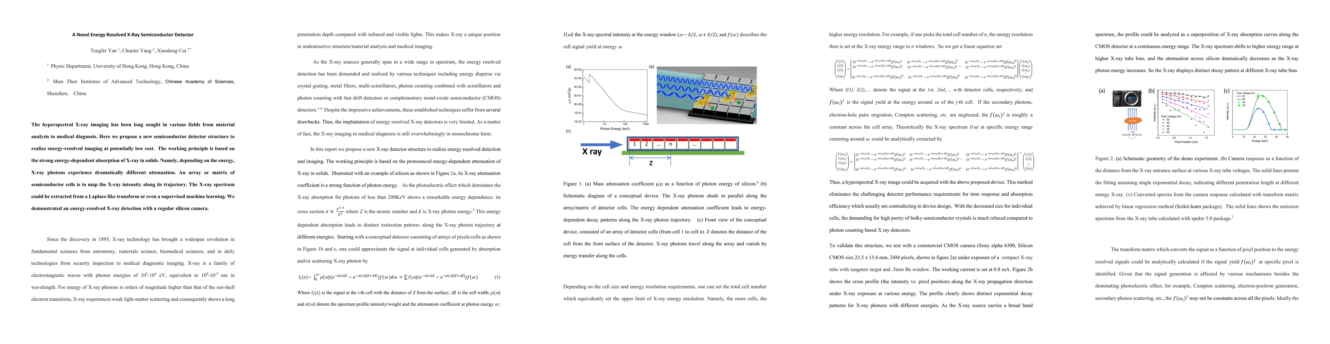 This paper proposes a novel semiconductor detector for hyperspectral X-ray imaging, utilizing energy-dependent absorption in solids to map X-ray intensity. The detector employs an array of semiconductor cells and demonstrates initial results using a silicon camera.