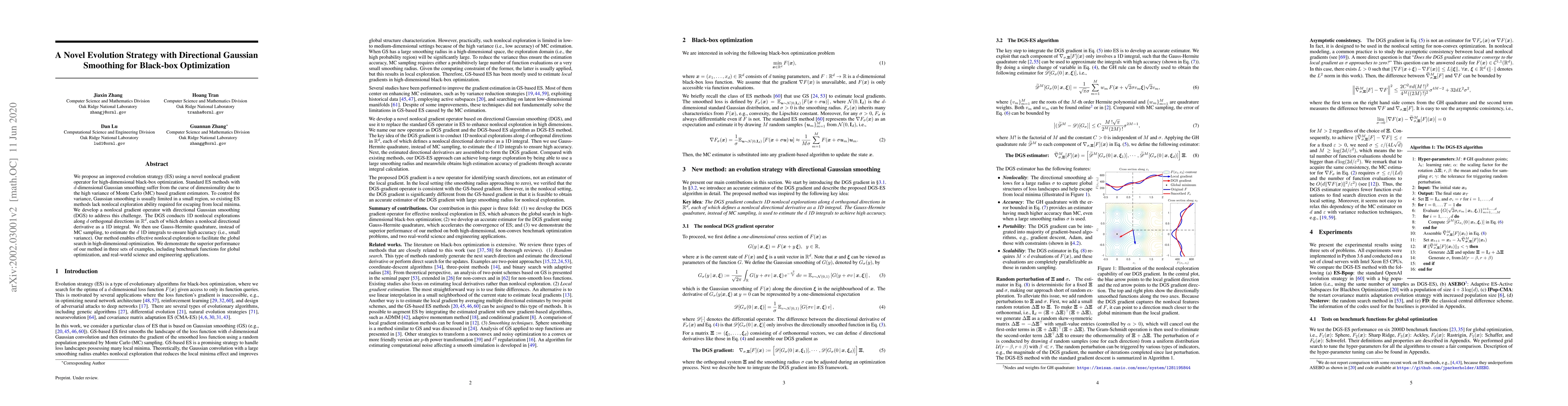 This paper proposes an enhanced evolution strategy with a nonlocal gradient operator using directional Gaussian smoothing to improve high-dimensional black-box optimization. The method addresses the high variance issue of gradient estimators by employing Gauss-Hermite quadrature for accurate 1D nonlocal explorations, enabling effective global search and superior performance in various optimization tasks.