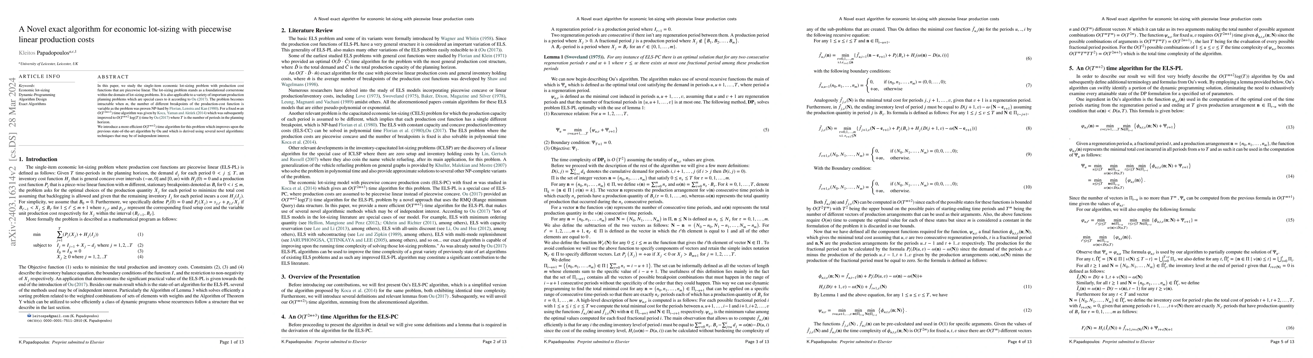 This paper presents a new exact algorithm for the single-item economic lot-sizing problem with piecewise linear production costs, achieving a time complexity of $O(T^{m+2})$, which improves upon previous algorithms. The novel techniques used may also benefit other areas of optimization.