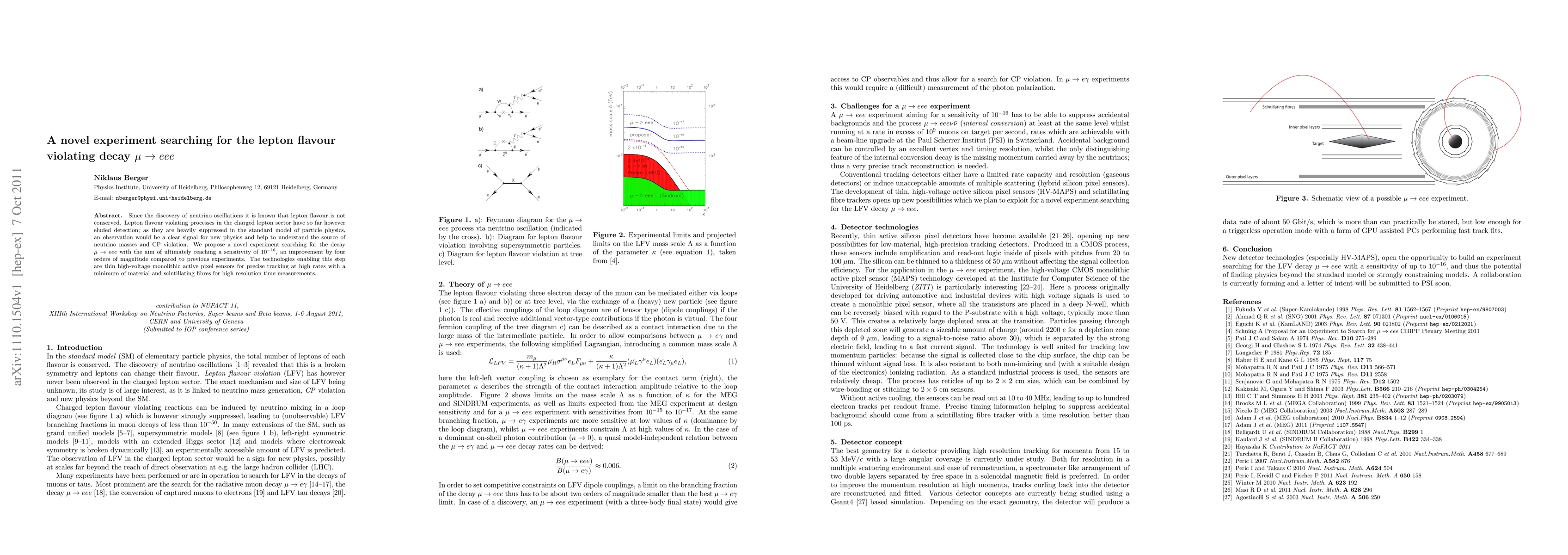 The paper proposes a new experiment aimed at detecting the lepton flavour violating decay μ → eee, which could indicate new physics beyond the Standard Model. The experiment seeks to achieve a sensitivity four times better than previous attempts using advanced tracking and time measurement technologies.