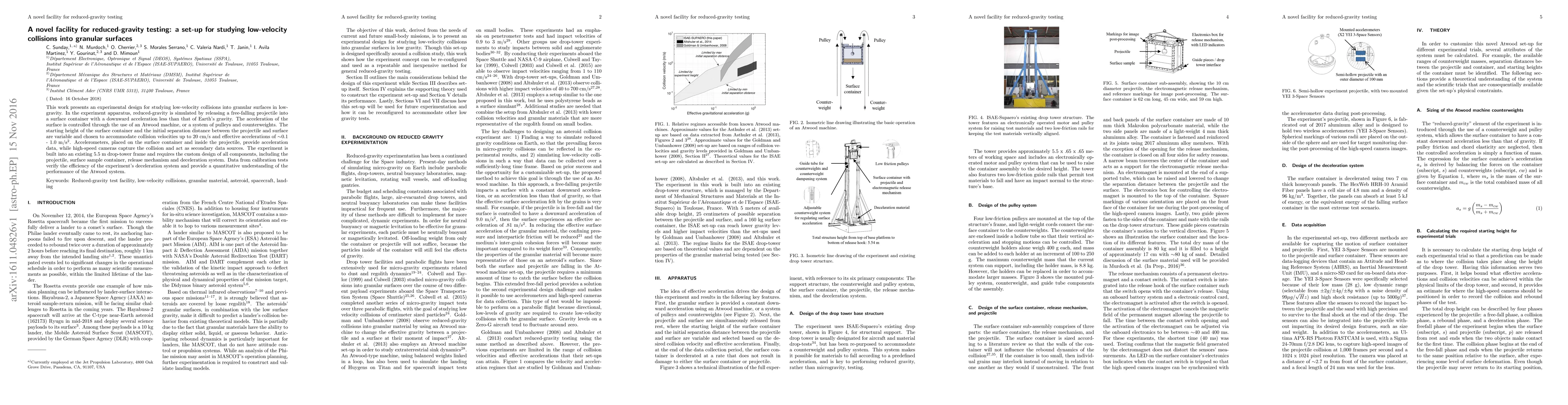 Researchers developed a new facility to study low-velocity collisions into granular surfaces in low-gravity conditions, using an Atwood machine to simulate reduced gravity and capture collision data with high-speed cameras and accelerometers.