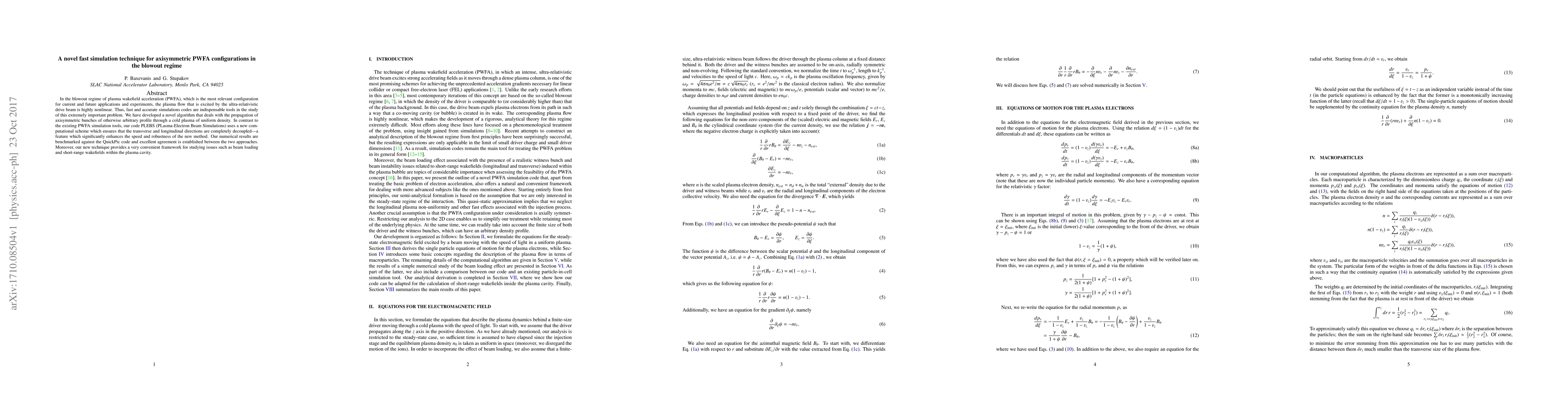 The research introduces PLEBS, a novel simulation code for studying axisymmetric plasma wakefield acceleration (PWFA) in the blowout regime. PLEBS uses a decoupling scheme in transverse and longitudinal directions, making it faster and more robust than existing tools. The method is benchmarked against QuickPic and proves effective for examining beam loading and short-range wakefields.