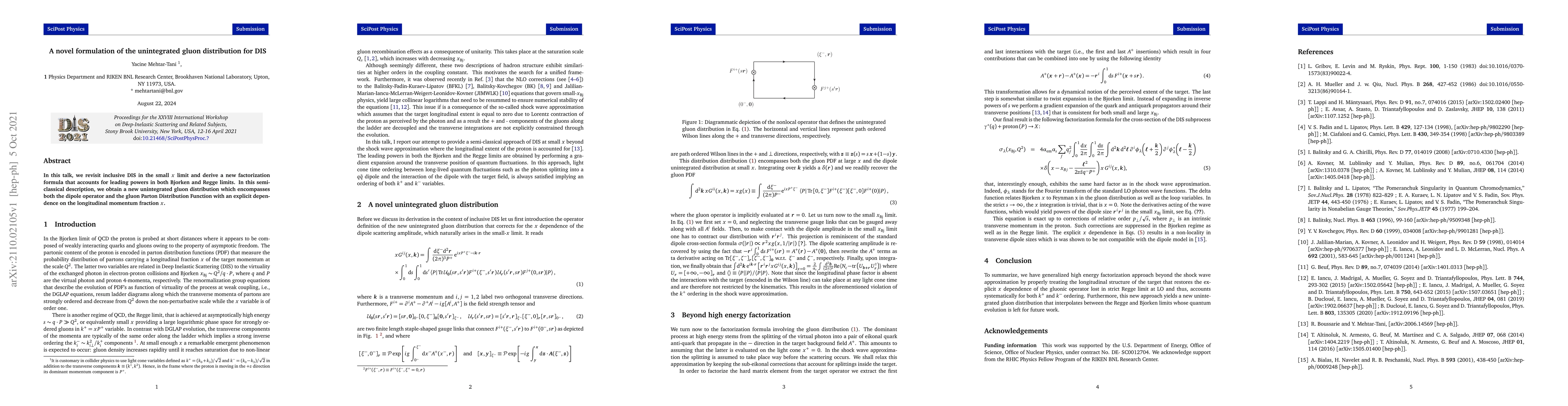 In this talk, we revisit inclusive DIS in the small $x$ limit and derive a new factorization formula that accounts for leading powers in both Bjorken and Regge limits. In this semi-classical description, we obtain a new unintegrated gluon distribution which encompasses both the dipole operator and the gluon Parton Distribution Function with an explicit dependence on the longitudinal momentum fraction $x$.