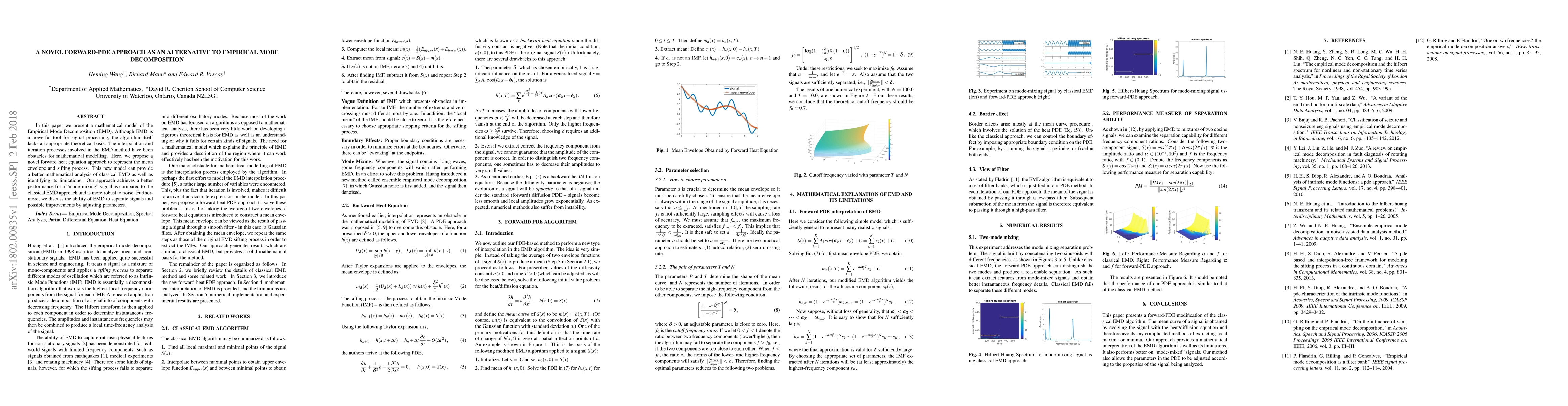 In this paper we present a mathematical model of the Empirical Mode Decomposition (EMD). Although EMD is a powerful tool for signal processing, the algorithm itself lacks an appropriate theoretical basis. The interpolation and iteration processes involved in the EMD method have been obstacles for mathematical modelling. Here, we propose a novel forward heat equation approach to represent the mean envelope and sifting process. This new model can provide a better mathematical analysis of classical EMD as well as identifying its limitations. Our approach achieves a better performance for a "mode-mixing" signal as compared to the classical EMD approach and is more robust to noise. Furthermore, we discuss the ability of EMD to separate signals and possible improvements by adjusting parameters.