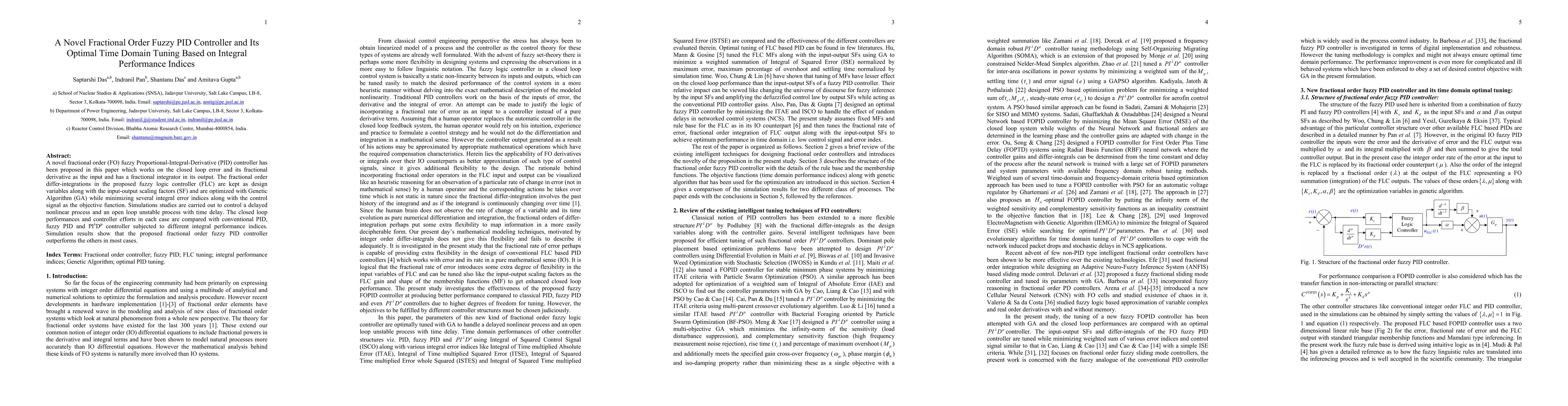 This paper proposes a novel fractional order fuzzy PID controller optimized using Genetic Algorithm to minimize integral performance indices. Simulation results demonstrate superior performance over conventional PID, fuzzy PID, and PIλDμ controllers in controlling delayed nonlinear and unstable processes.