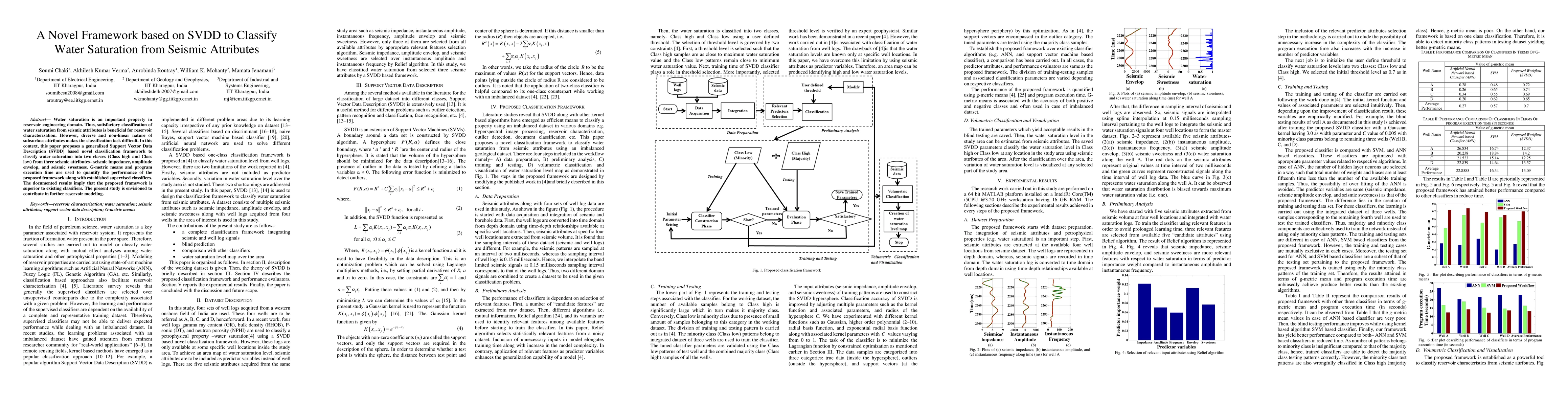 Water saturation is an important property in reservoir engineering domain. Thus, satisfactory classification of water saturation from seismic attributes is beneficial for reservoir characterization. However, diverse and non-linear nature of subsurface attributes makes the classification task difficult. In this context, this paper proposes a generalized Support Vector Data Description (SVDD) based novel classification framework to classify water saturation into two classes (Class high and Class low) from three seismic attributes seismic impedance, amplitude envelop, and seismic sweetness. G-metric means and program execution time are used to quantify the performance of the proposed framework along with established supervised classifiers. The documented results imply that the proposed framework is superior to existing classifiers. The present study is envisioned to contribute in further reservoir modeling.
