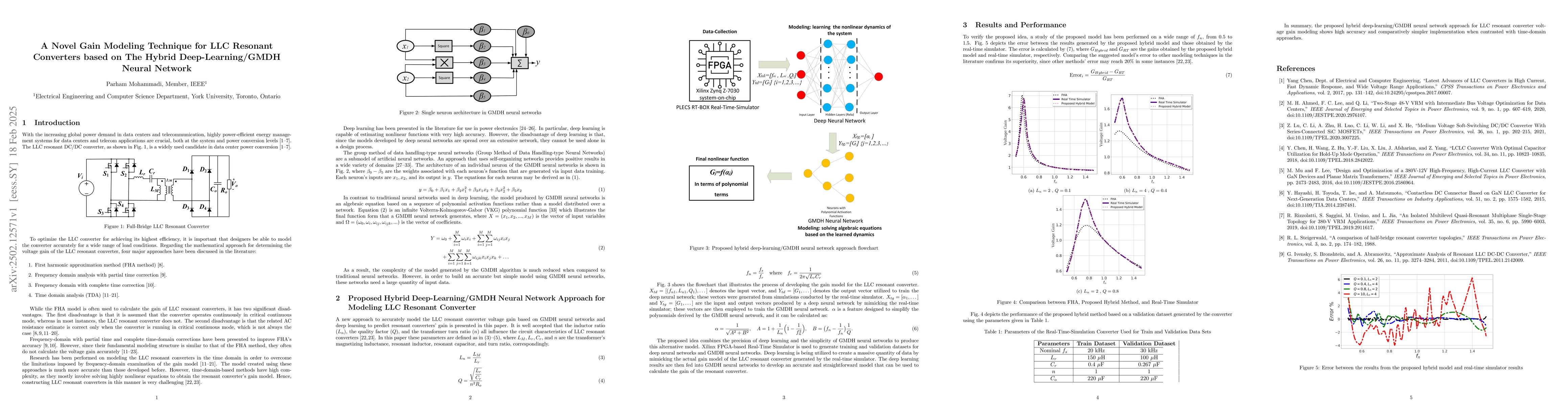 The paper introduces a novel hybrid deep-learning/GMDH neural network approach that combines the high accuracy of deep learning with the simplicity of GMDH neural networks for modeling LLC resonant converter voltage gain.