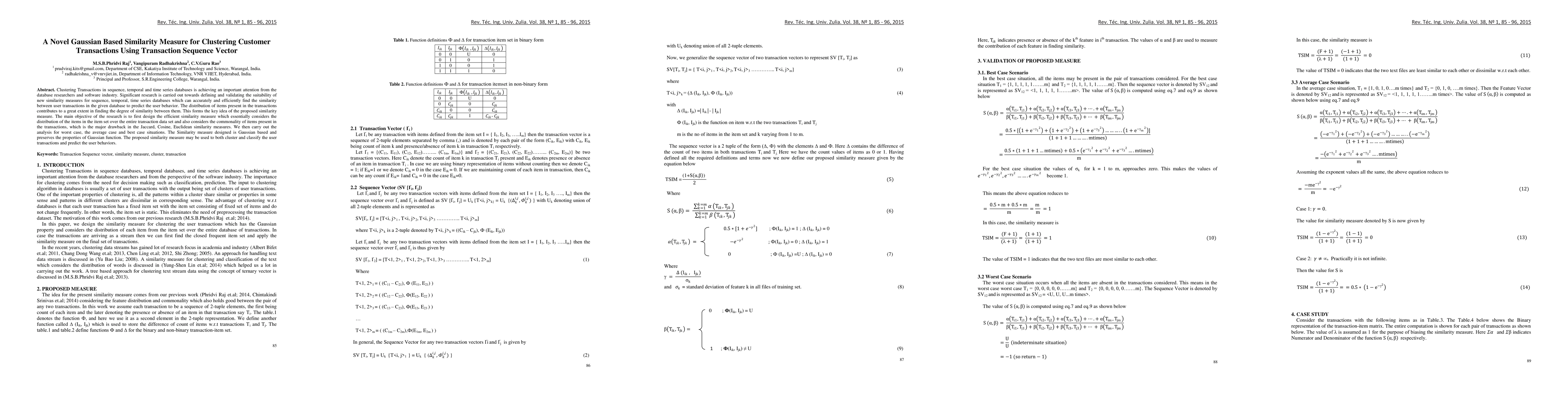 This paper proposes a novel Gaussian-based similarity measure for clustering customer transactions, addressing the limitations of existing measures like Jaccard, Cosine, and Euclidean. The measure considers the distribution of items and their commonality in transactions, aiming to accurately predict user behavior.