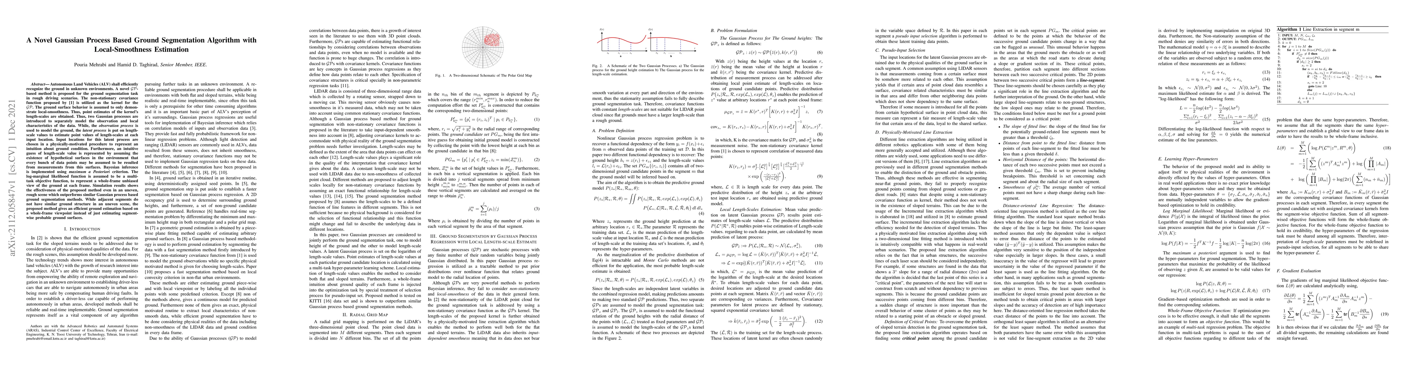 Autonomous Land Vehicles (ALV) shall efficiently recognize the ground in unknown environments. A novel $\mathcal{GP}$-based method is proposed for the ground segmentation task in rough driving scenarios. A non-stationary covariance function is utilized as the kernel for the $\mathcal{GP}$. The ground surface behavior is assumed to only demonstrate local-smoothness. Thus, point estimates of the kernel's length-scales are obtained. Thus, two Gaussian processes are introduced to separately model the observation and local characteristics of the data. While, the \textit{observation process} is used to model the ground, the \textit{latent process} is put on length-scale values to estimate point values of length-scales at each input location. Input locations for this latent process are chosen in a physically-motivated procedure to represent an intuition about ground condition. Furthermore, an intuitive guess of length-scale value is represented by assuming the existence of hypothetical surfaces in the environment that every bunch of data points may be assumed to be resulted from measurements from this surfaces. Bayesian inference is implemented using \textit{maximum a Posteriori} criterion. The log-marginal likelihood function is assumed to be a multi-task objective function, to represent a whole-frame unbiased view of the ground at each frame. Simulation results shows the effectiveness of the proposed method even in an uneven, rough scene which outperforms similar Gaussian process based ground segmentation methods. While adjacent segments do not have similar ground structure in an uneven scene, the proposed method gives an efficient ground estimation based on a whole-frame viewpoint instead of just estimating segment-wise probable ground surfaces.