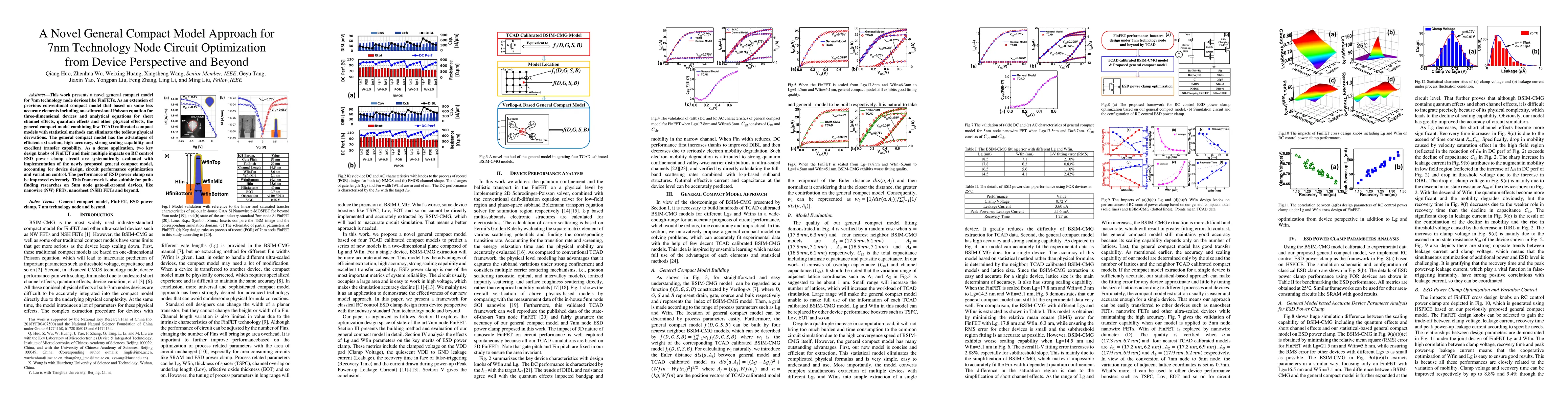 This work presents a novel general compact model for 7nm technology node devices like FinFETs. As an extension of previous conventional compact model that based on some less accurate elements including one-dimensional Poisson equation for three-dimensional devices and analytical equations for short channel effects, quantum effects and other physical effects, the general compact model combining few TCAD calibrated compact models with statistical methods can eliminate the tedious physical derivations. The general compact model has the advantages of efficient extraction, high accuracy, strong scaling capability and excellent transfer capability. As a demo application, two key design knobs of FinFET and their multiple impacts on RC control ESD power clamp circuit are systematically evaluated with implementation of the newly proposed general compact model, accounting for device design, circuit performance optimization and variation control. The performance of ESD power clamp can be improved extremely. This framework is also suitable for pathfinding researches on 5nm node gate-all-around devices, like nanowire (NW) FETs, nanosheet (NSH) FETs and beyond.