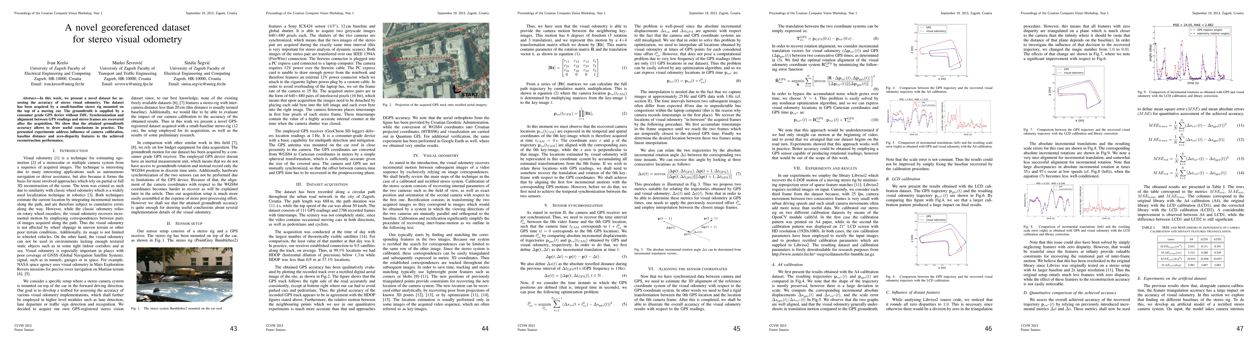 In this work, we present a novel dataset for assessing the accuracy of stereo visual odometry. The dataset has been acquired by a small-baseline stereo rig mounted on the top of a moving car. The groundtruth is supplied by a consumer grade GPS device without IMU. Synchronization and alignment between GPS readings and stereo frames are recovered after the acquisition. We show that the attained groundtruth accuracy allows to draw useful conclusions in practice. The presented experiments address influence of camera calibration, baseline distance and zero-disparity features to the achieved reconstruction performance.