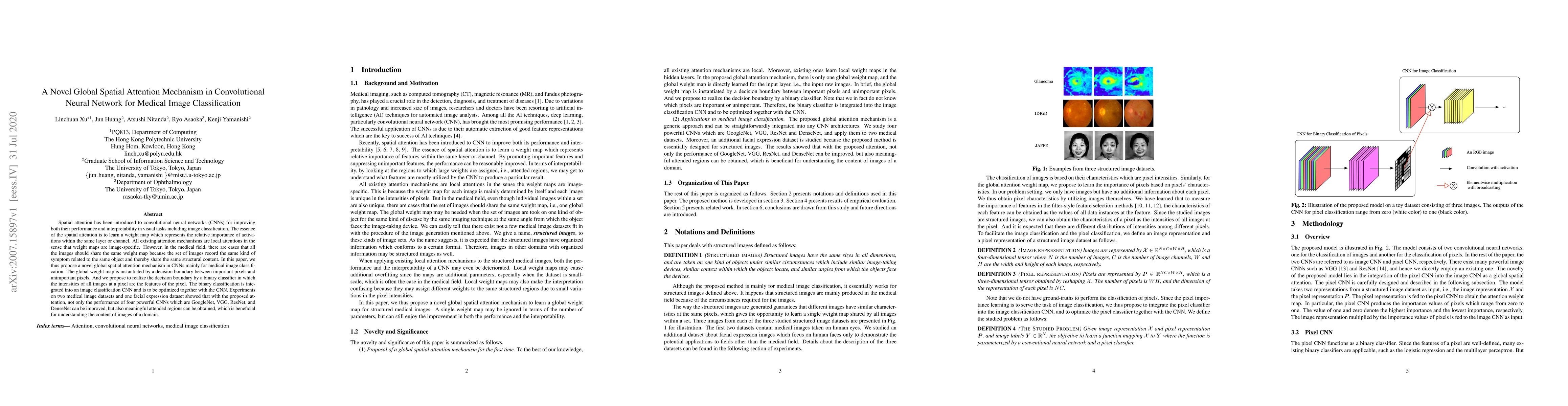 This paper introduces a novel global spatial attention mechanism in CNNs to enhance medical image classification. The proposed global attention mechanism uses a binary classifier to determine a weight map that applies uniformly across images, improving both performance and interpretability.