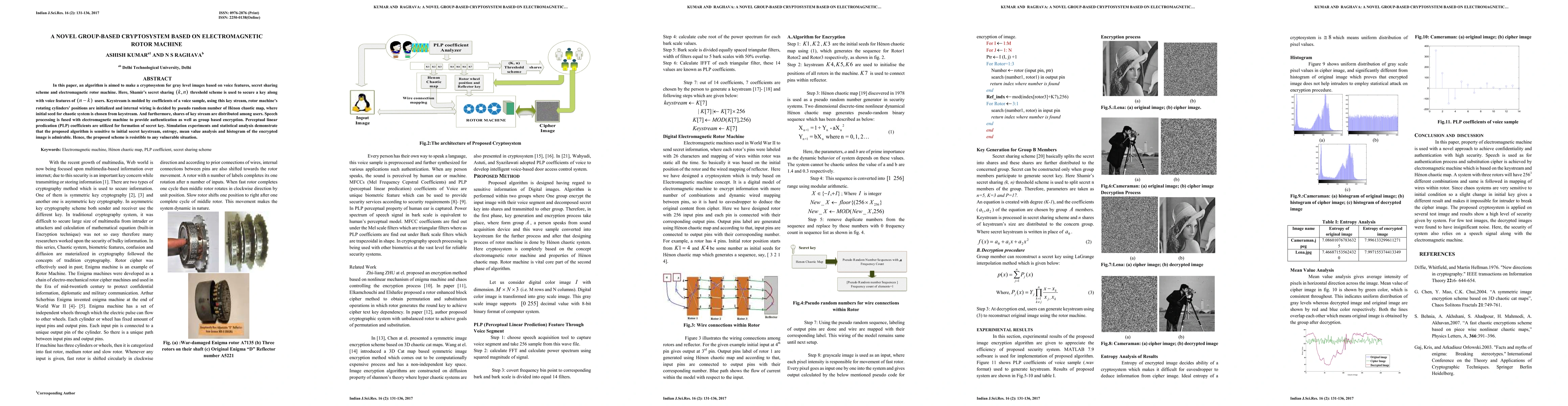 In this paper, an algorithm is aimed to make a cryptosystem for gray level images based on voice features, secret sharing scheme and electromagnetic rotor machine. Here, Shamir secret sharing (k n) threshold scheme is used to secure a key along with voice features of (n k) users. Keystream is molded by coefficients of a voice sample, using this key stream, rotor machines rotating cylinders positions are initialized and internal wiring is decided by pseudo random number of Henon chaotic map, where initial seed for chaotic system is chosen from keystream. And furthermore, shares of key stream are distributed among users. Speech processing is fused with electromagnetic machine to provide authentication as well as group based encryption. Perceptual linear predication (PLP) coefficients are utilized for formation of secret key. Simulation experiments and statistical analysis demonstrate that the proposed algorithm is sensitive to initial secret keystream, entropy, mean value analysis and histogram of the encrypted image is admirable. Hence, the proposed scheme is resistible to any vulnerable situation.