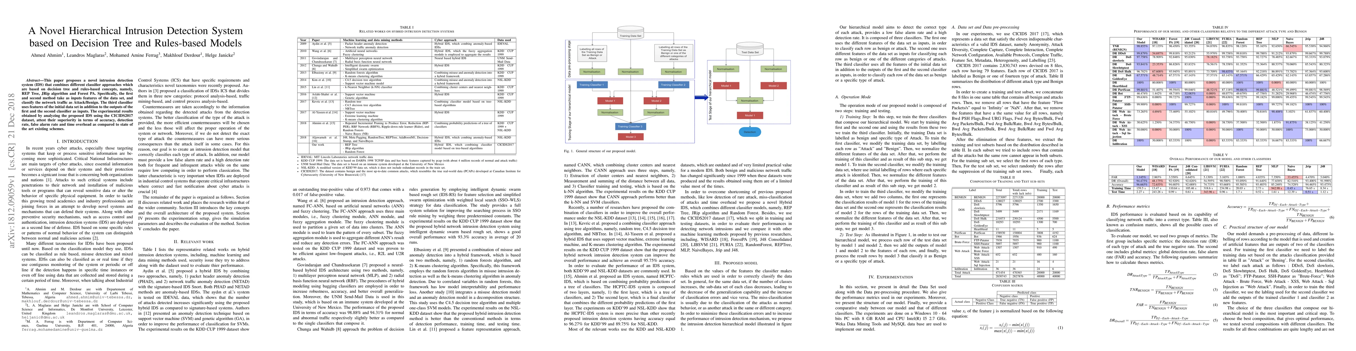 This paper proposes a novel intrusion detection system (IDS) that combines different classifier approaches which are based on decision tree and rules-based concepts, namely, REP Tree, JRip algorithm and Forest PA. Specifically, the first and second method take as inputs features of the data set, and classify the network traffic as Attack/Benign. The third classifier uses features of the initial data set in addition to the outputs of the first and the second classifier as inputs. The experimental results obtained by analyzing the proposed IDS using the CICIDS2017 dataset, attest their superiority in terms of accuracy, detection rate, false alarm rate and time overhead as compared to state of the art existing schemes.