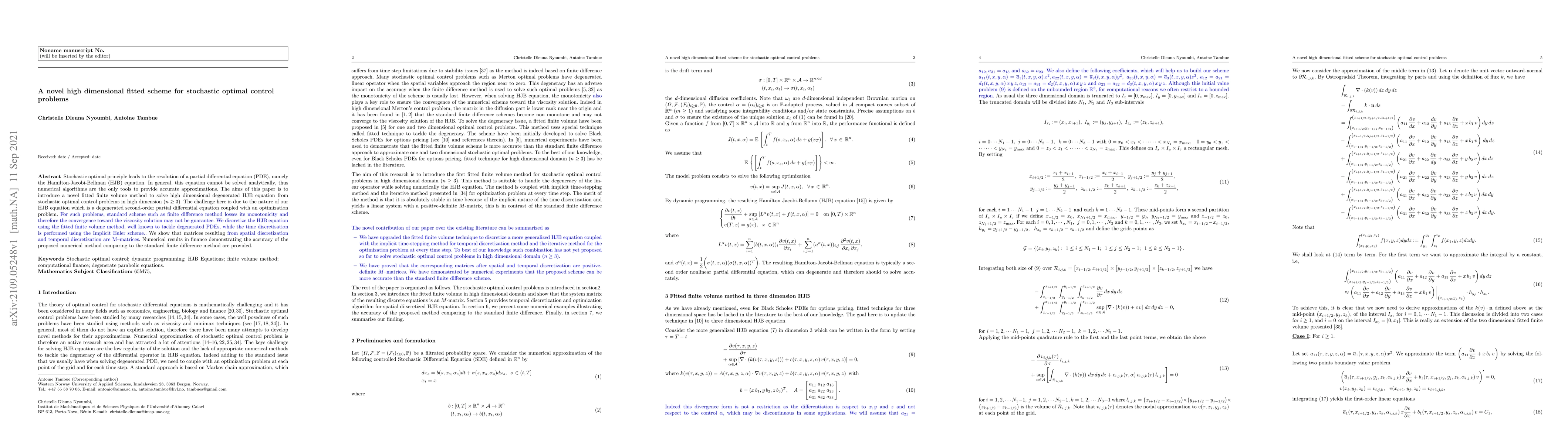 A novel fitted finite volume method is introduced to solve high-dimensional degenerated Hamilton-Jacobi-Bellman equations in stochastic optimal control problems, providing accurate approximations with guaranteed monotonicity.