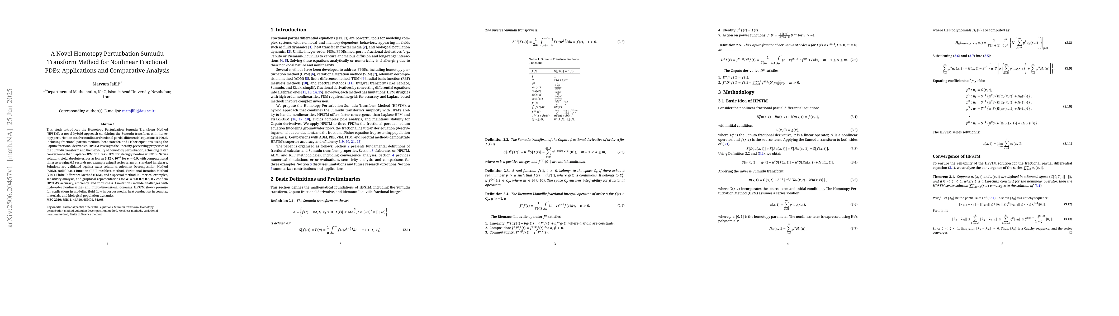 This study introduces the Homotopy Perturbation Sumudu Transform Method (HPSTM), a novel hybrid approach combining the Sumudu transform with homotopy perturbation to solve nonlinear fractional partial differential equations (FPDEs), including fractional porous medium, heat transfer, and Fisher equations, using the Caputo fractional derivative. HPSTM leverages the linearity-preserving properties of the Sumudu transform and the flexibility of homotopy perturbation, achieving faster convergence than Laplace-HPM or Elzaki-HPM for strongly nonlinear FPDEs. Series solutions yield absolute errors as low as $3.12 \times 10^{-3}$ for $\alpha = 0.9$, with computational times averaging 0.5 seconds per example using 5 series terms on standard hardware. Solutions are validated against exact solutions, Adomian Decomposition Method (ADM), radial basis function (RBF) meshless method, Variational Iteration Method (VIM), Finite Difference Method (FDM), and a spectral method. Numerical examples, sensitivity analysis, and graphical representations for $\alpha = 1.0, 0.9, 0.8, 0.7$ confirm HPSTM's accuracy, efficiency, and robustness. Limitations include challenges with high-order nonlinearities and multi-dimensional domains. HPSTM shows promise for applications in modeling fluid flow in porous media, heat conduction in complex materials, and biological population dynamics.