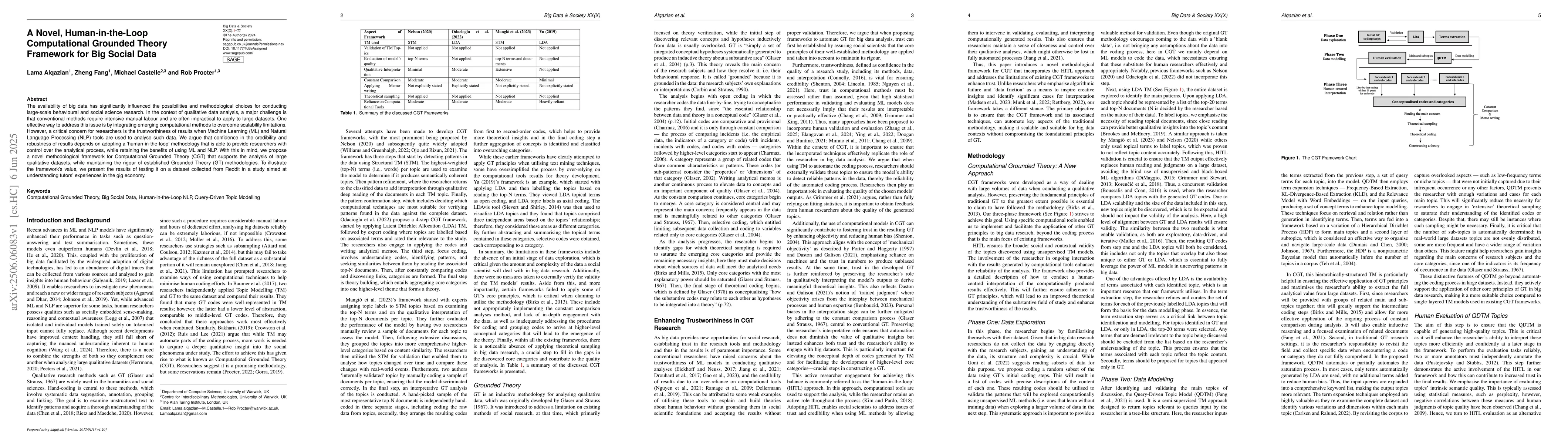 The proposed Computational Grounded Theory framework offers a balance between rigorous qualitative methodology and the benefits of machine learning and natural language processing for big social data analysis.