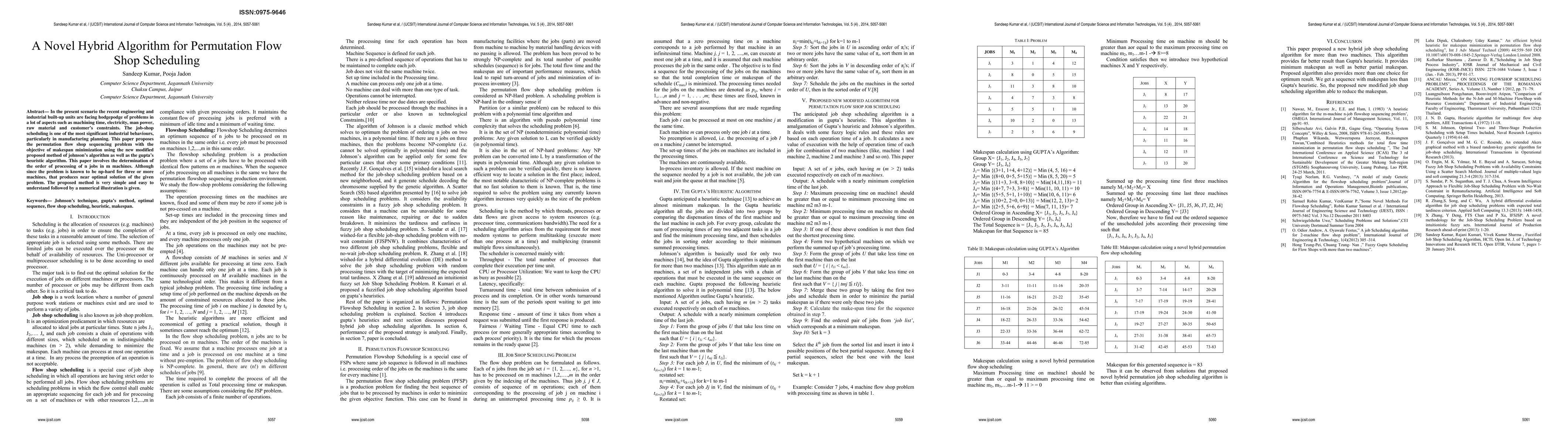 The paper proposes a novel hybrid algorithm combining Gupta's heuristic and Johnson's algorithm for permutation flow shop scheduling to minimize makespan, applicable for more than two machines.
