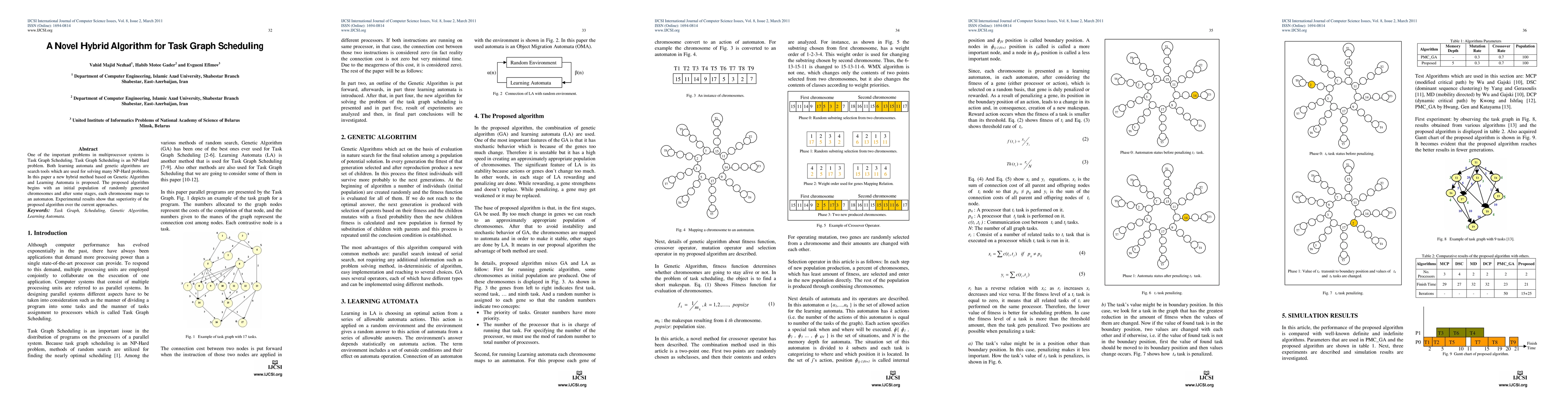 This paper proposes a novel hybrid algorithm combining Genetic Algorithms and Learning Automata for Task Graph Scheduling, demonstrating superior performance over existing methods through experimental results.