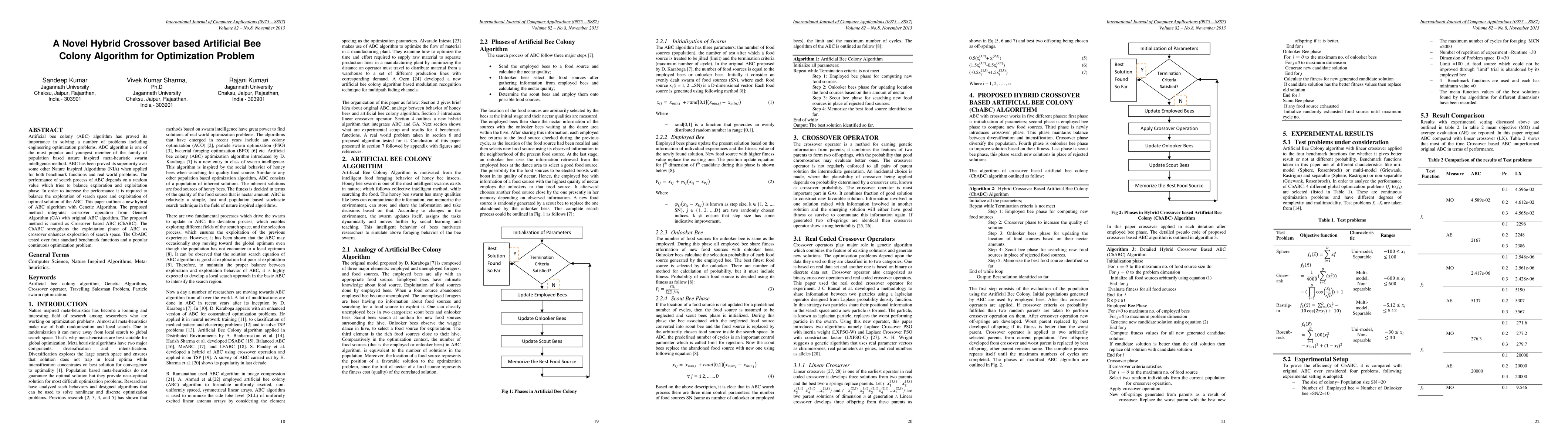 This paper introduces a novel hybrid Crossover based Artificial Bee Colony (CbABC) algorithm that combines the ABC optimization method with Genetic Algorithm's crossover operation to enhance the exploitation phase. The proposed CbABC method is tested on benchmark functions to demonstrate its effectiveness in optimization problems.