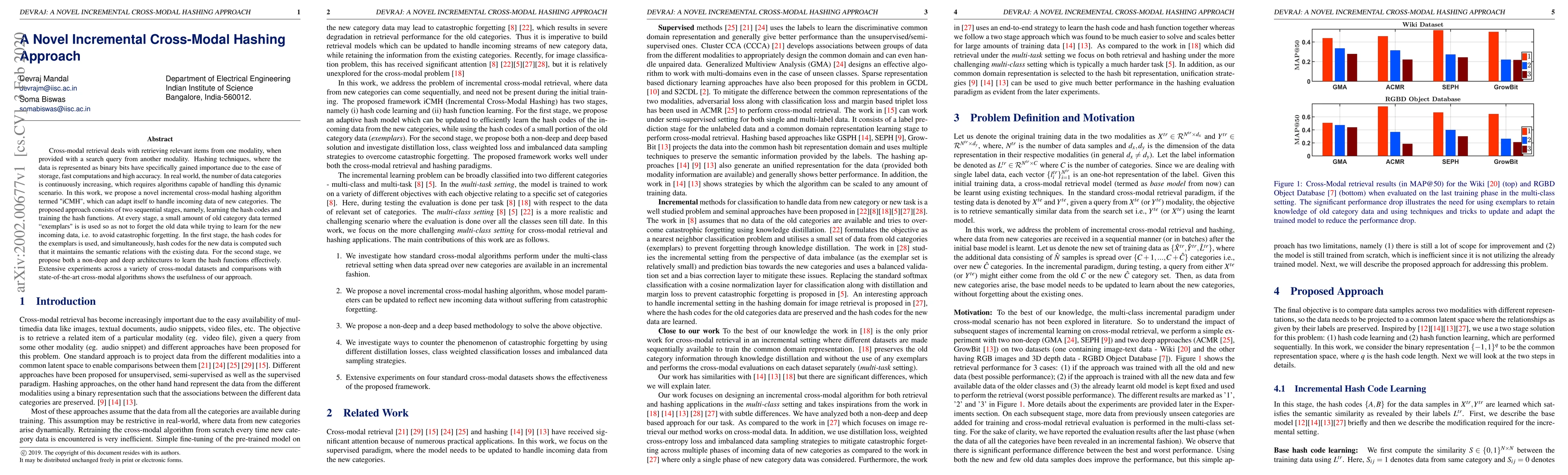 A novel cross-modal hashing approach called iCMH is proposed to adapt to new data categories without forgetting old ones. It uses two stages with exemplars to maintain semantic relations and outperforms state-of-the-art algorithms in various experiments.